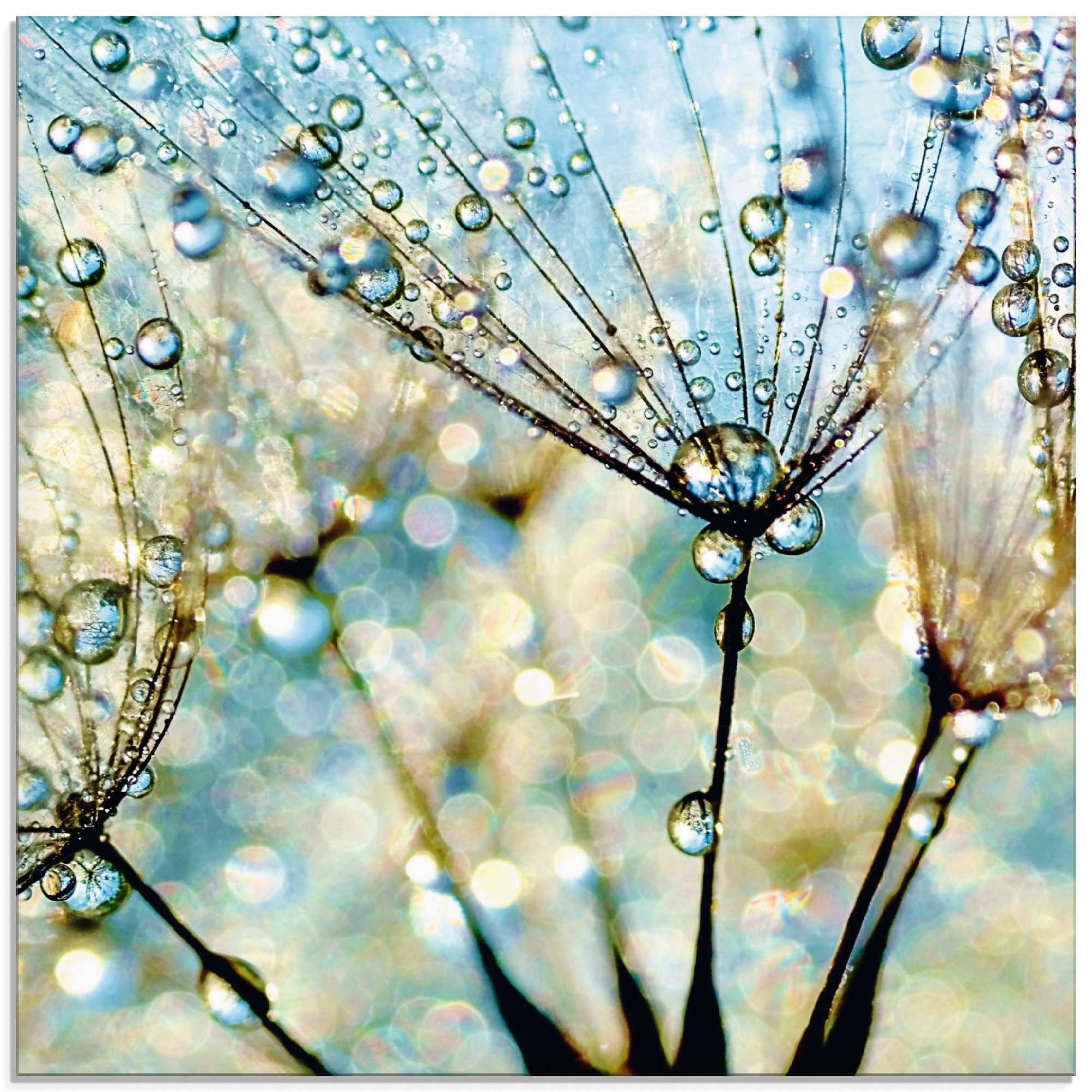 Mit viel Liebe für kunstvolles Wohnen verleiht unser Glasbild mit dem Motiv "Pusteblume Blaue Diamanten" von Julia Delgado Deinem Zuhause Charakter. Es begeistert durch hochauflösende Druckqualität und hochwertige Materialien – Made in Germany.