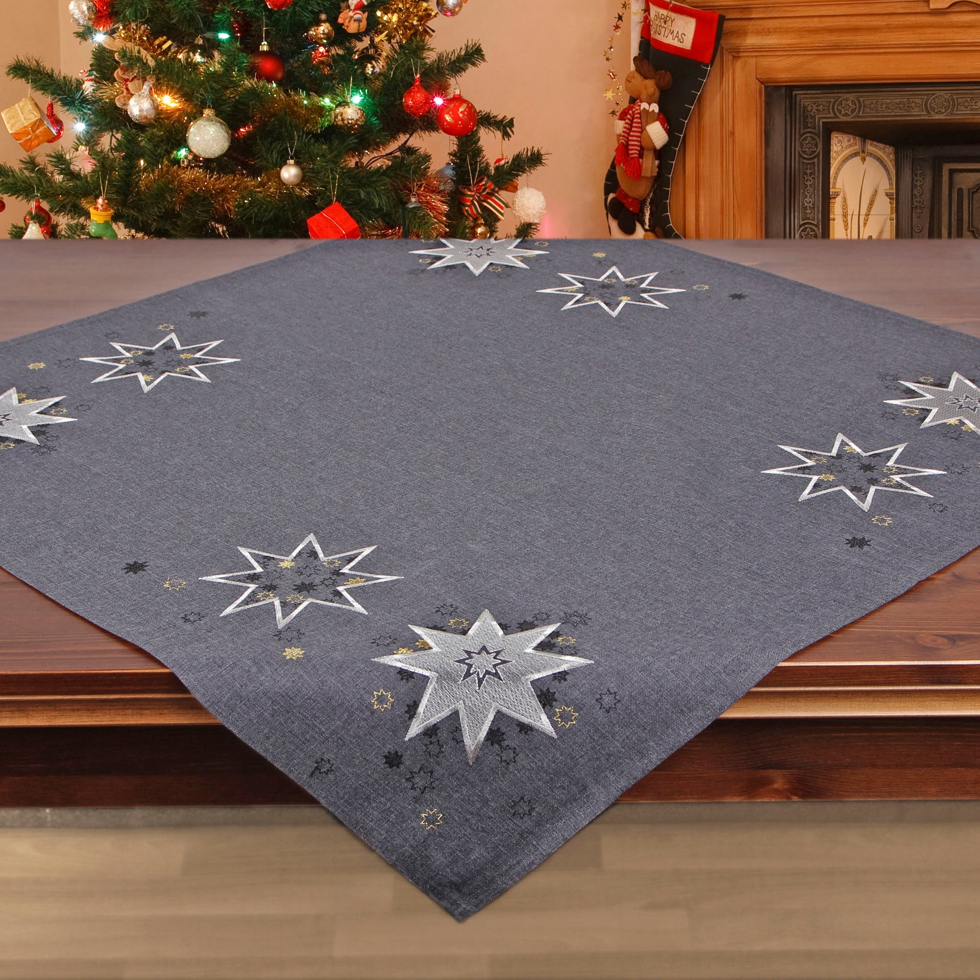 Delindo Lifestyle Mitteldecke »Weihnachtssterne« Glattes Gewebe, bestickt