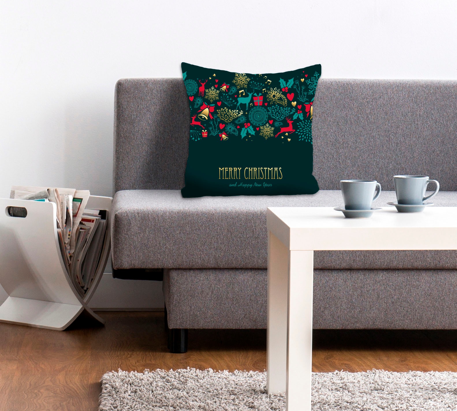 queence Dekokissen »Feiertage« Kissenhülle,Merry Christmas and a Happy New Year,Schriftzug,Festlich