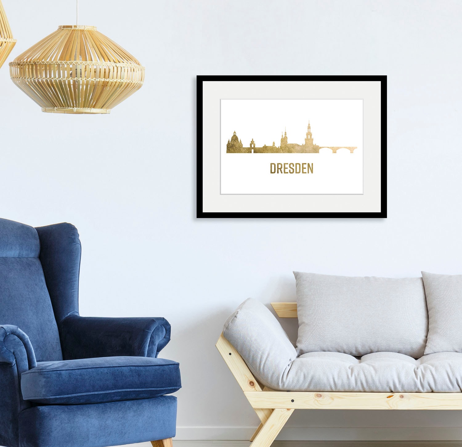 queence Bild »Berlin Skyline GOLD« Berlin | Deutschland | Schriftzug | Stadt | Städte 1 Stk. tlg. HD Premium Poster-Druck inkl. Holzrahmen