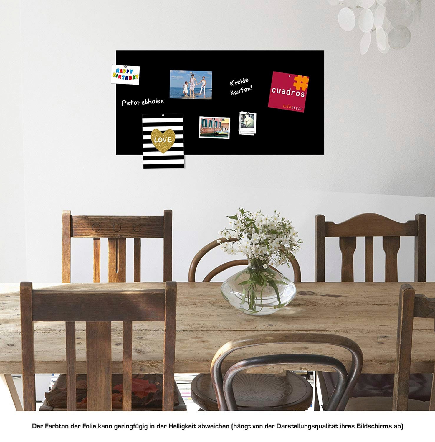 - Tafelfolie kann einfach mit einem feuchten Tuch abgewischt & beschriftet werden
