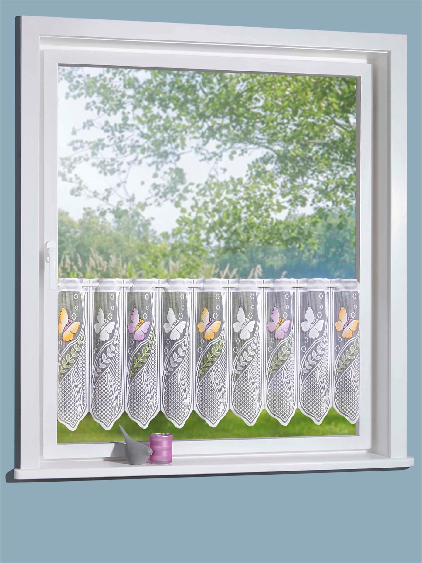 Home Basics Scheibengardine »FISCIO« Schlaufen 1 Stk. tlg. Schlaufencafehaus, digital bedruckt
