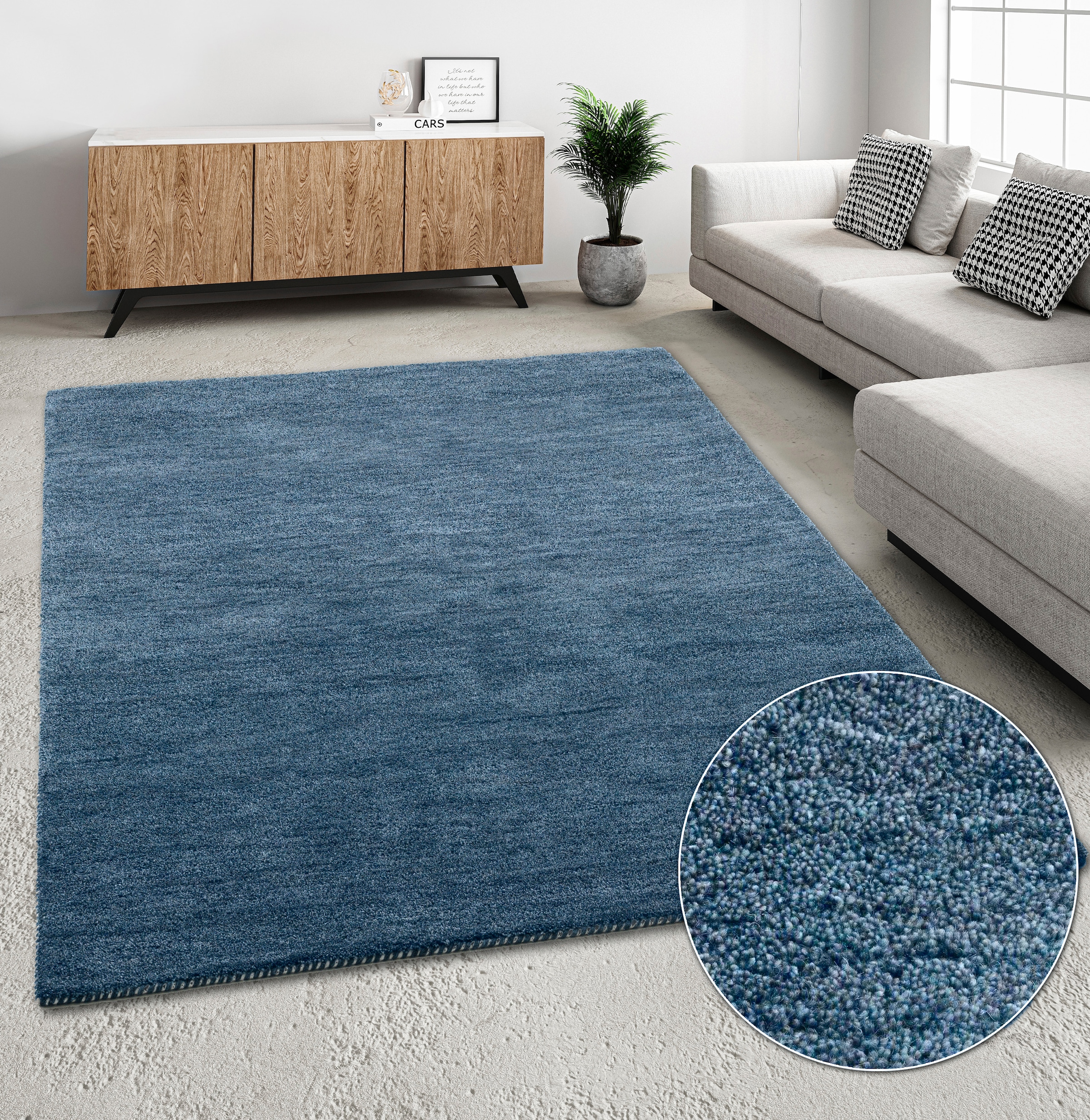 Hinweis Material | Bitte beachten Sie, dass Produkte aus Naturmaterialien möglicherweise einen Eigengeruch haben können. Dies ist auf die natürlichen Eigenschaften der Materialien zurückzuführen und stellt keinen Mangel dar. Der Geruch kann mit der Zeit verblassen oder durch Lüften reduziert werden. Wir empfehlen Ihnen, die Produkte vor Gebrauch ausreichend zu lüften, um eventuelle Gerüche zu minimieren.;Wolle ist weich und hautfreundlich. Zudem ist sie wärmeisolierend und daher besonders geeignet für eine fusswarme Wohnatmosphäre. Wolle reguliert zudem sehr gut Feuchtigkeit und beeinflusst damit aktiv das Raumklima. Neue Wollteppiche neigen bei einem flauschigen Flor öfter zur Flusenbildung, welche mit der Nutzungsdauer abnimmt, aber nicht vollständig abzustellen sein wird.;Bitte saugen Sie Wollteppiche immer ohne den Einsatz von Bürsten, so erhalten Sie die natürlich-schöne Optik. |