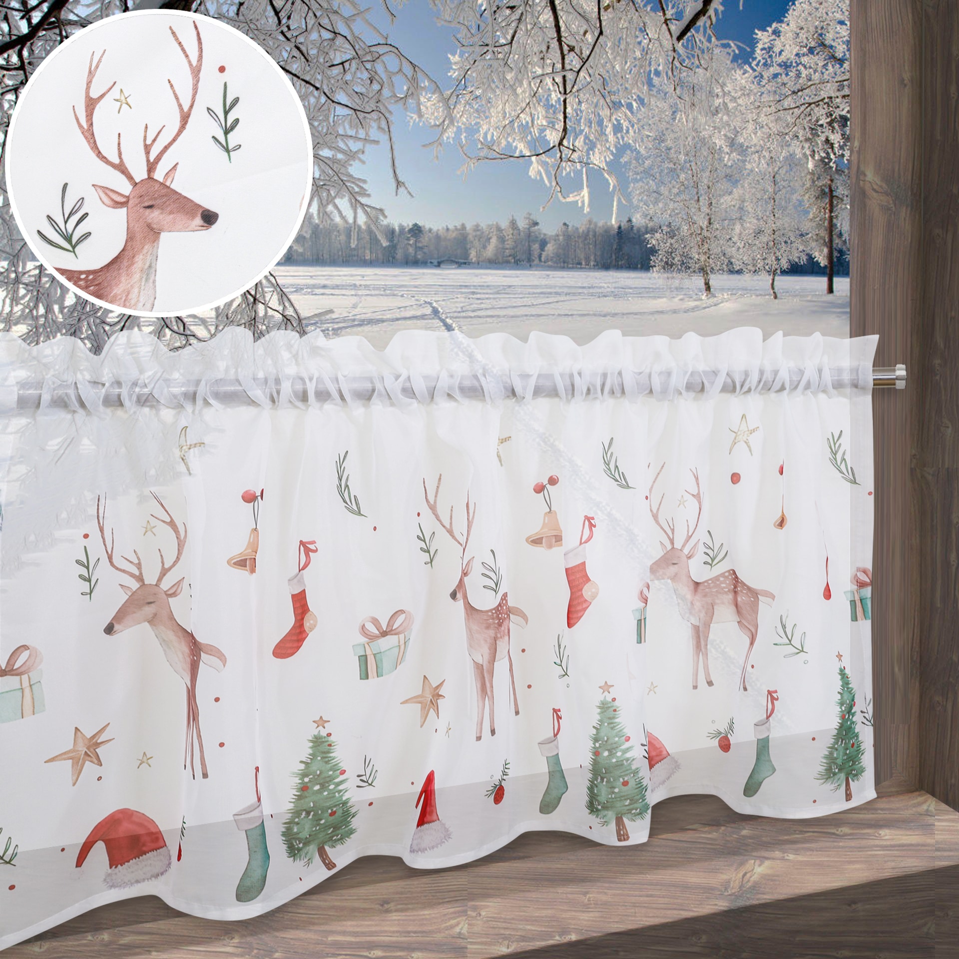 Weckbrodt Scheibengardine »Silvan« Schlaufen 1 Stk. tlg. Bistro, Voile, bedruckt, transparent, HxB 45x120cm, Gardine, Store