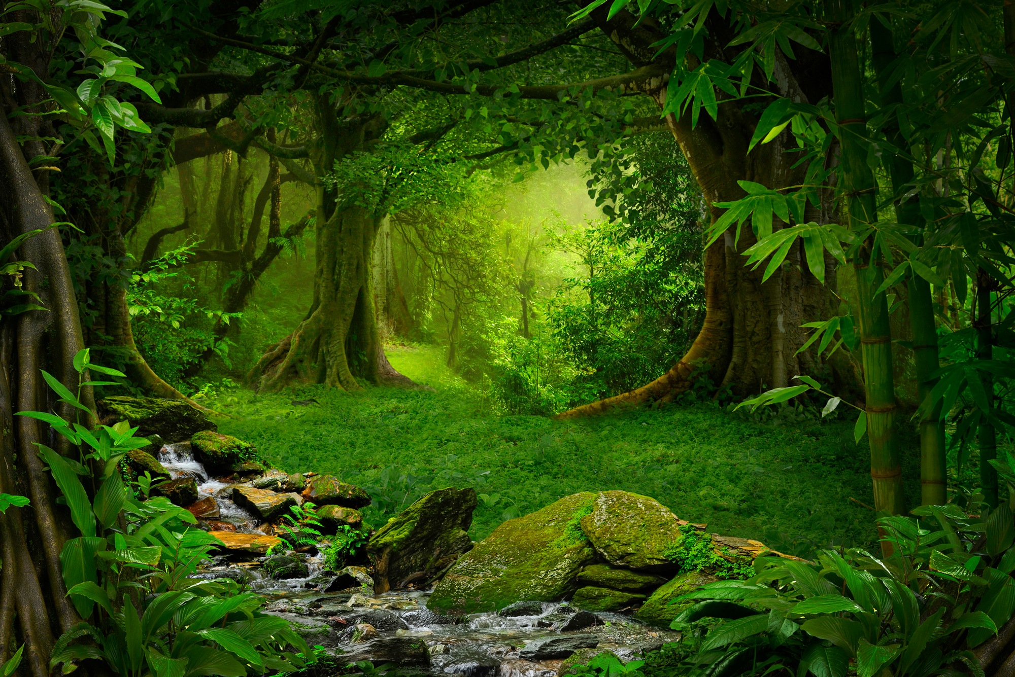 - Ihr Wunschmotiv TROPISCHER WALD-BAUM FARNE DSCHUNGEL SONNE WEG PFLANZE Inklusive Tapetenkleister