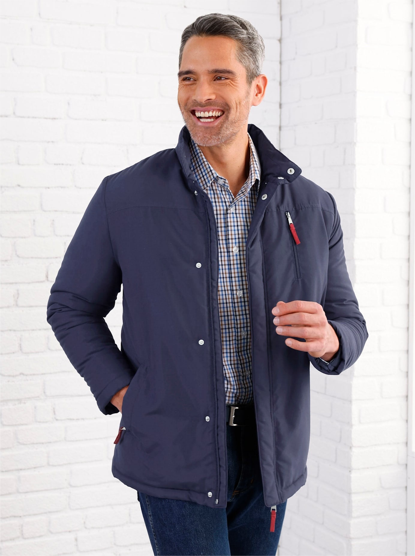 Die Jacke in lässig-markanter Optik lässt Sie an kalten Tagen richtig gut aussehen. Mit schützendem Stehkragen, durch Druckknopfleiste winddicht verdecktem Reissverschluss, einer Brusttasche sowie 2 seitlichen Taschen jeweils mit Reissverschluss. Gefüttert und wattiert – für normale Wintertemperaturen geeignet. 100% Polyester. Futter: 100% Polyester. Maschinenwäsche.