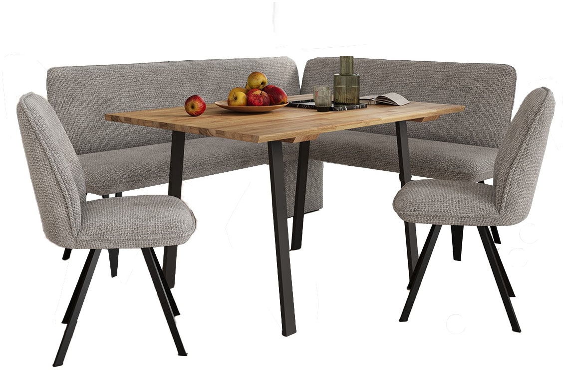Set beinhaltet | 1 Esstisch, 1 Essbank, 4 Armlehnstühle |