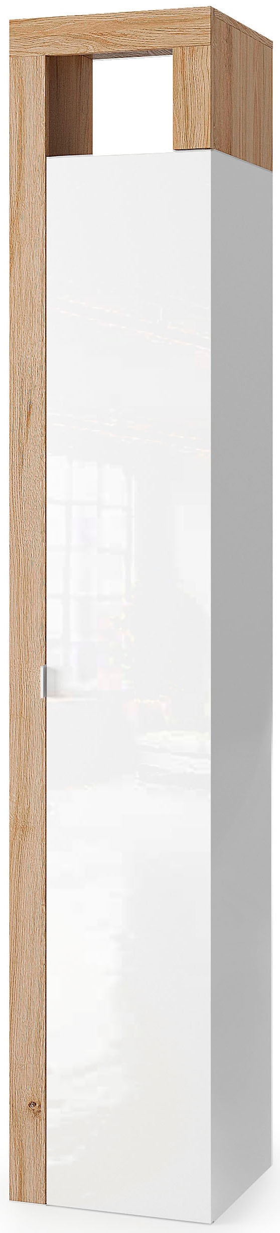 welltime Hochschrank »Hamburg Höhe 195 cm, Breite 35 cm, Badezimmerschrank mit 1 Tür,« dekorativer Rahmen, offenes Fach, Metallgriff, 5 Einlegeböden