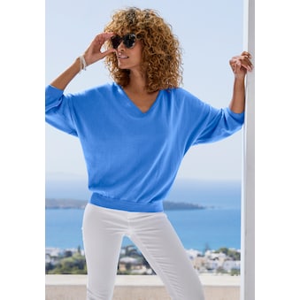 In trendigen Farben gibt es diesen Pullover von Aniston CASUAL. Rollkante am Rundhals-Ausschnitt, 3/4-lange Ärmel mit Schlitz im Bündchen und kleinen Seitenschlitzen im Saum. Figurumspielender Feinstrick-Pullover. Länge in Gr. 36 ca. 62 cm. Super weiche Strick-Qualität aus Viskose mit Nylon. Maschinenwäsche.