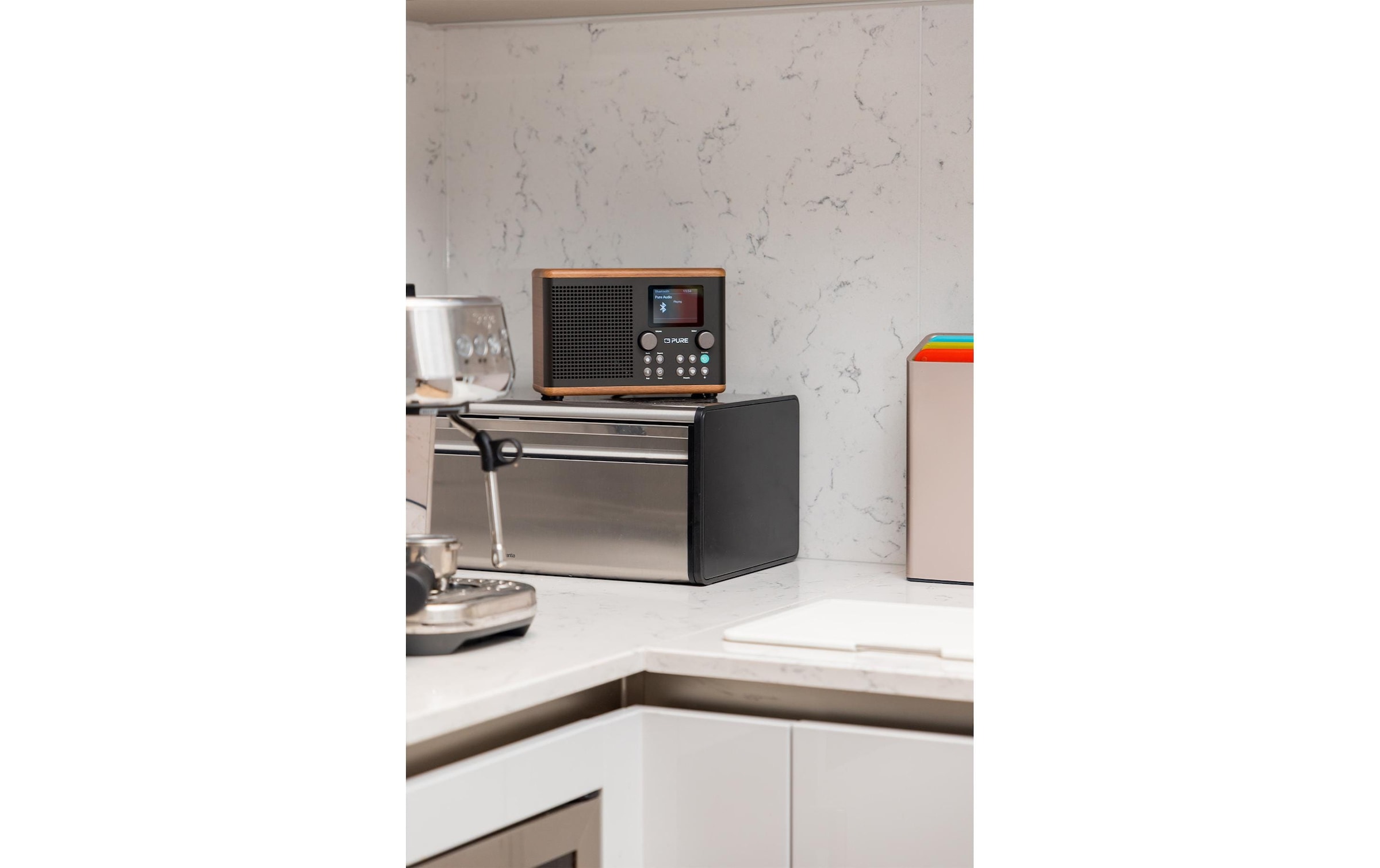 Pure DAB+ Radio Classic H4 Walnuss/Schwarz. 40 Senderspeicherplätze pro Tuner. DAB+/FM-Radio mit Bluetooth 5.3. Küchen-Timer, Alarm/Schlaf-Timer.