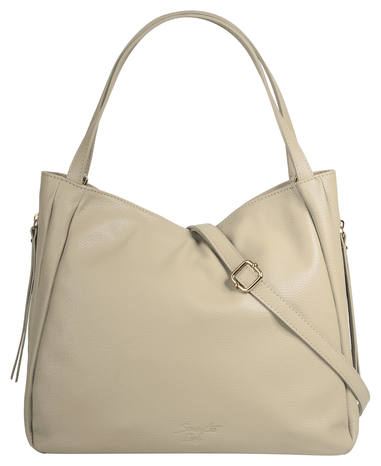 So viel Platz, wie das Herz begehrt bietet die Umhängetasche von Samantha Look aus italienischem Leder! Ob den schnellen Einkauf zwischendurch, die Ausbeute Ihrer Shopping-Tour oder die Alltagsausstattung - das geräumige Hauptfach trägt alles, was unterwegs nicht fehlen darf. Diverse Einsteckmöglichkeiten und eine verschliessbare Innentasche strukturieren den Stauraum der Handtasche und helfen dabei, Ordnung zu halten. Wechseln Sie für den maximalen Tragekomfort unterwegs nach Belieben zwischen weichen Henkeln und einem verstellbaren Schultergurt.
