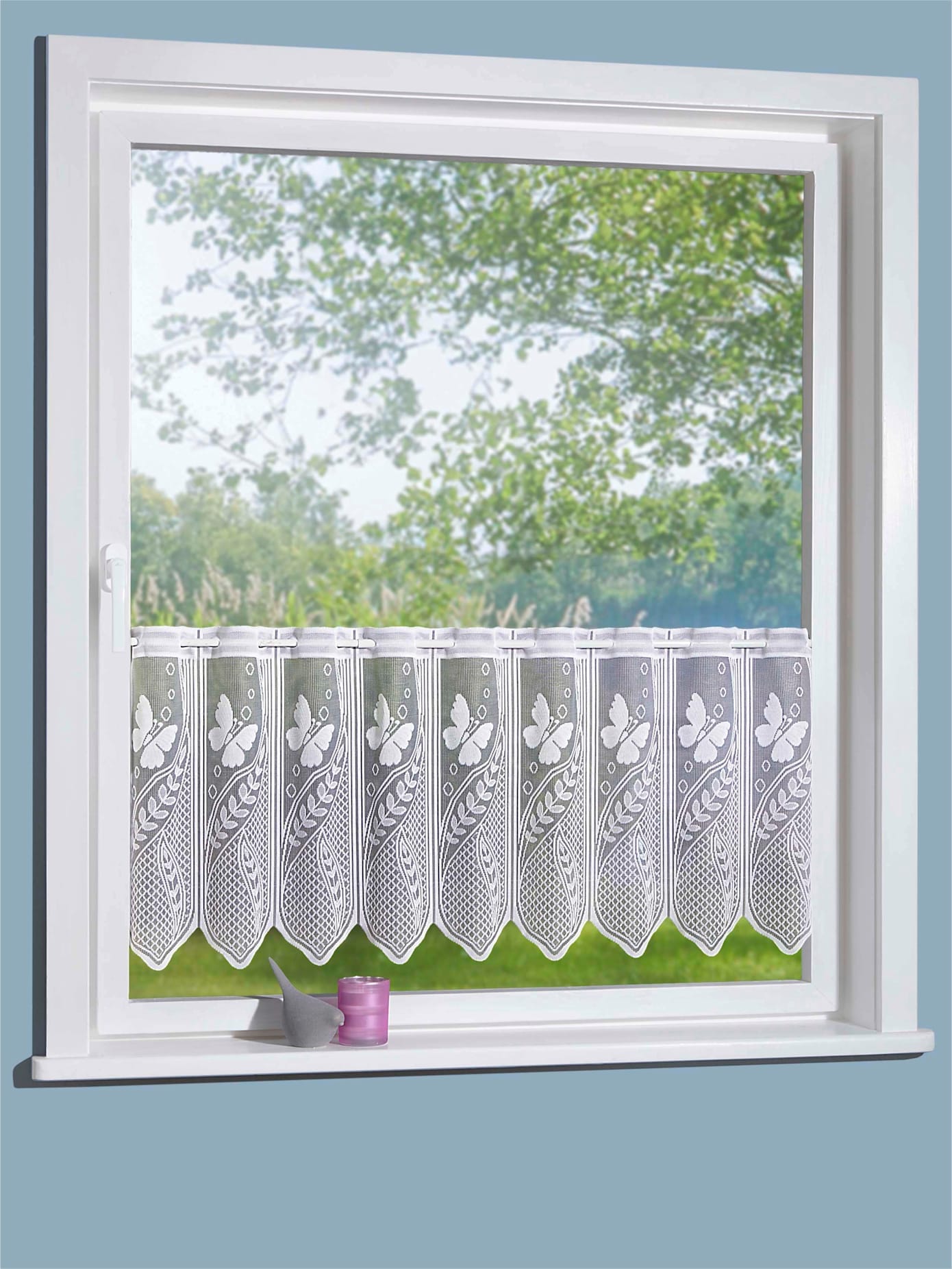 Für ein stimmungsvolles und natürliches Wohnambiente sorgt diese wunderschöne Kurzgardine »Häuschen«, aus dem Hause Stickereien und Textilien Plauen. Dieses moderne Accessoire ist mit eleganten kleinen Häuschen verziert. Der Scheibenhänger verleiht Ihrem Zuhause eine zeitlose Note und eignet sich perfekt für Küche, Schlaf- oder Wohnzimmer.
