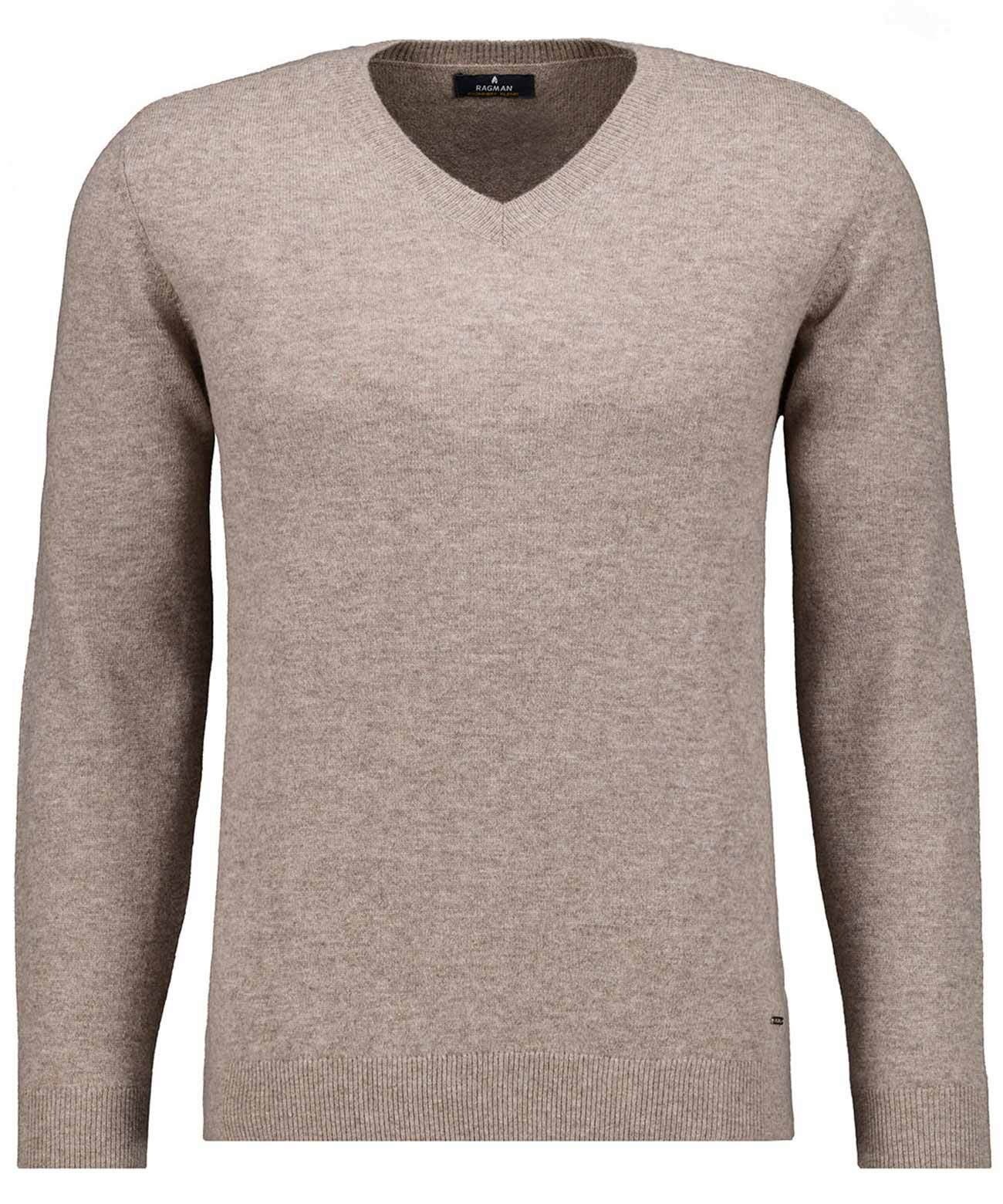 Merino und Kaschmir vereinen sich hier geradzu perfekt. Denn wenn die kälteren Tage in Anmarsch sind, freut man sich umso mehr auf diesen eher klassischen RAGMAN-Pullover mit V-Ausschnitt, der schön warm hält und äusserst vielseitig einsetzbar ist. Im Büro mit Hemd und Chino, in der Freizeit lässig mit T-Shirt und Lieblingsjeans.