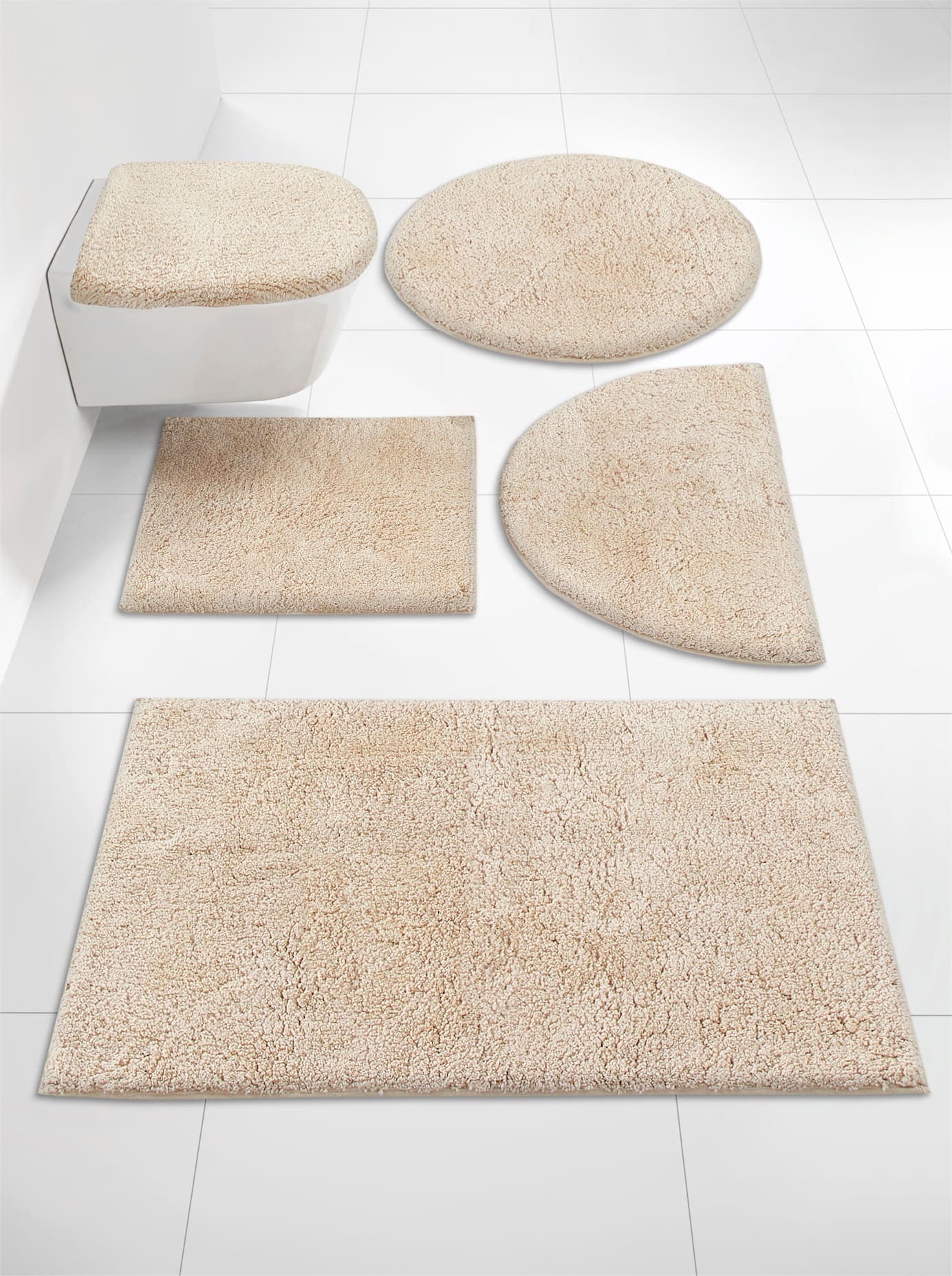 Kleine Wolke Badteppich Matino. Aus Polyester und Baumwolle gefertigt. Detailfarbe: Beige. Hochfloriger Badteppich. Sorgt für ein kuscheliges Gefühl unter den Füssen. Waschbar bei 30 °C.