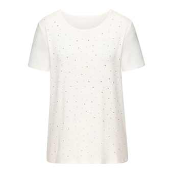 T-Shirt aus fein glitzerndem Ajourstrick von Lascana. Rundhalsausschnitt. Locker fallende Passform. Pflegeleichtes, elastisches Polyester.