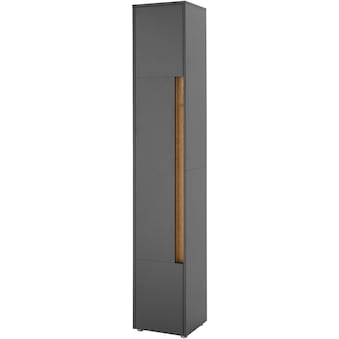 - Die Griffmulde in der Farbe Wotan Eiche verleiht dem Badschrank einen natürlichen Charme und sorgt für einen moderne Kontrast.