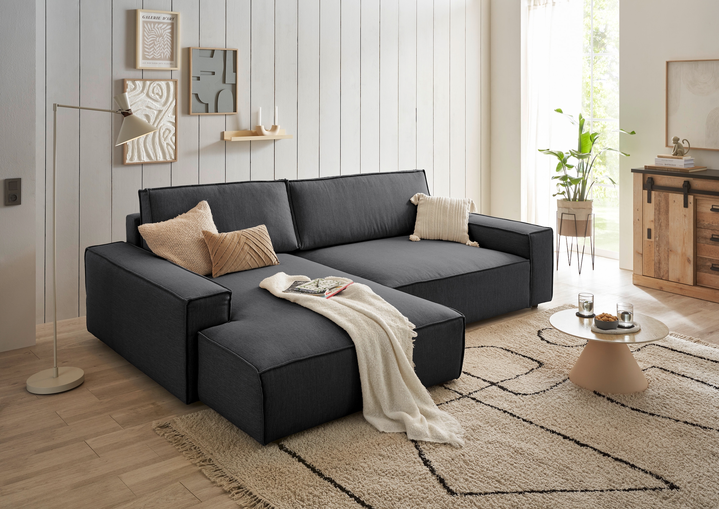 Home affaire Ecksofa »NEU: SHERWOOD XXL 284, Big-Sofa L-Form, tiefe Sitzfläche 95 cm, Cord« Recamiere rechts/links, als Schlafsofa stellbar, Cord u. Leinenoptik
