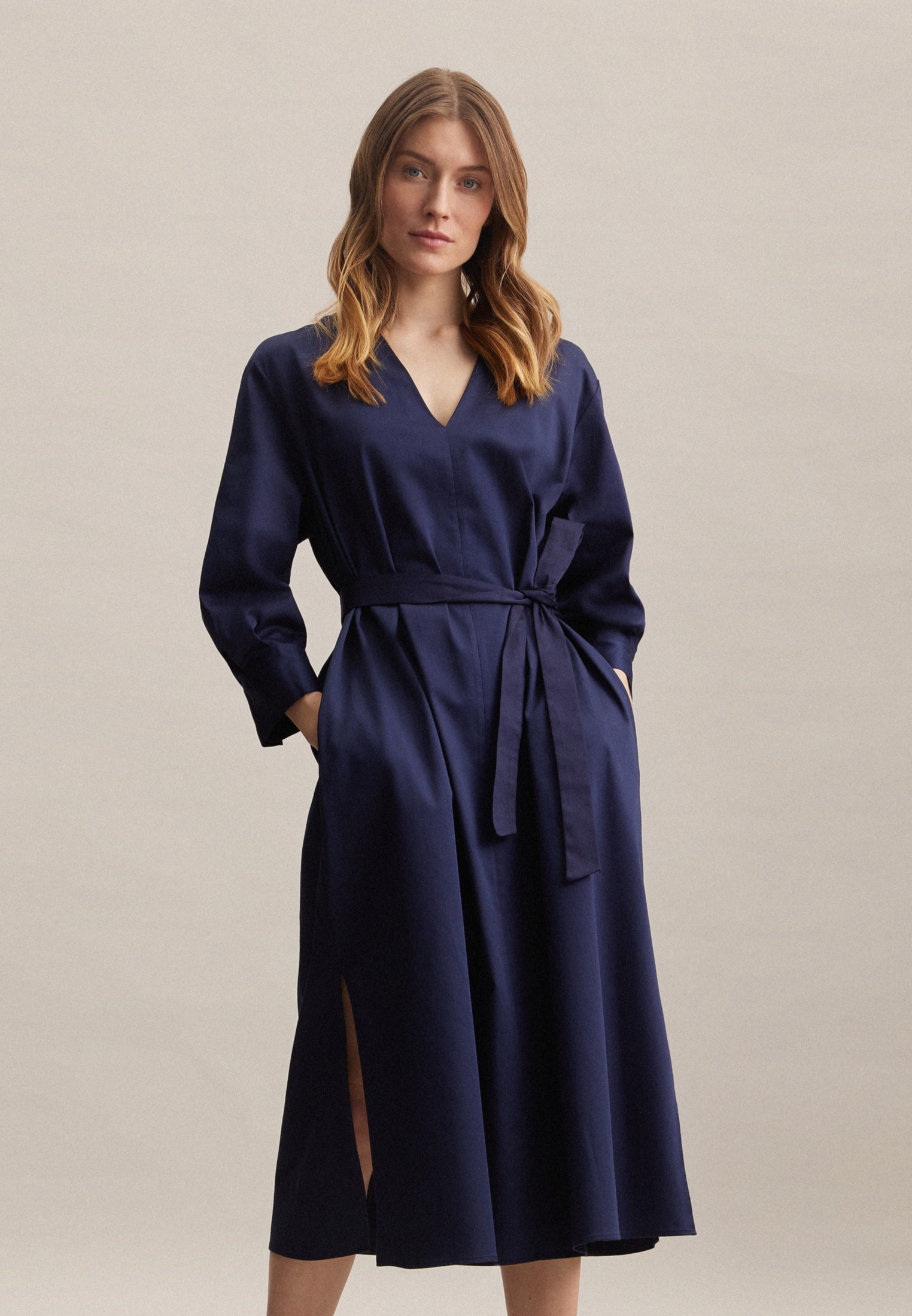 Moderner Schnitt: Das Maxi-Kleid von Seidensticker erweitert Ihre Garderobe um ein vielseitig einsetzbares Kleidungsstück. Leinen wird mit hoher Dichte gewebt und ergibt daher ein extrem widerstandsfähiges Material. In Kombination mit 100% Leinen ist es ideal für pflegeleichte Business-Outfits. Als moderner Schnitt liegt das Kleid leger und weniger eng an und schafft so optimalen Tragekomfort. Modernität und Eleganz vereinen sich im Design dieses Kleids und begeistern die modebewusste Frau. Für Liebhaber von eleganten Looks ist dieses 7/8-Arm-Kleid genau die richtige Wahl.