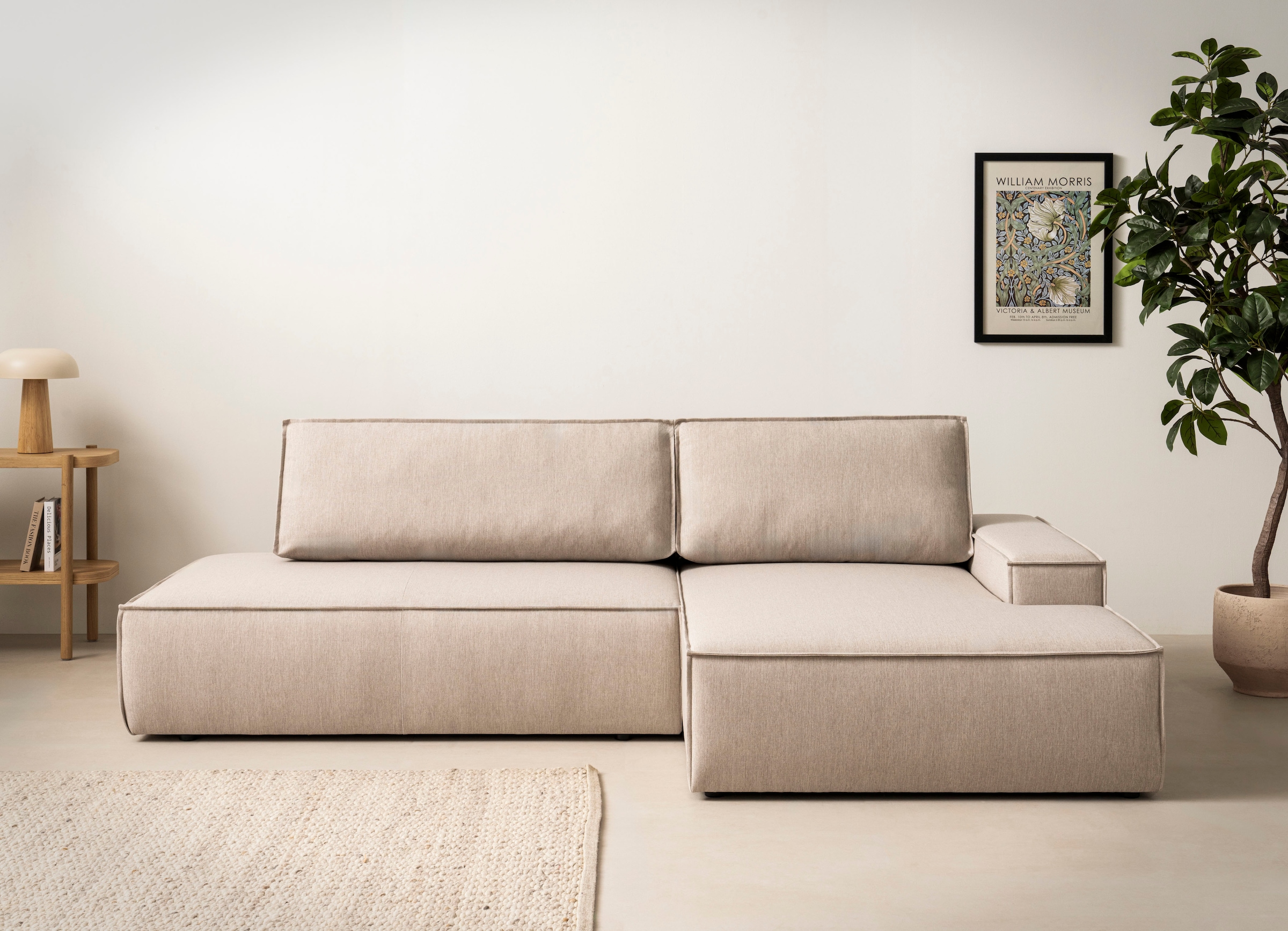 Home affaire Ecksofa »SHERWOOD, Schlafsofa in L-Form offen (275cm), Cord, Leinenoptik« Schlaffunktion und Bettkasten, Kedernaht, hoher Sitz- & Liegekomfort,