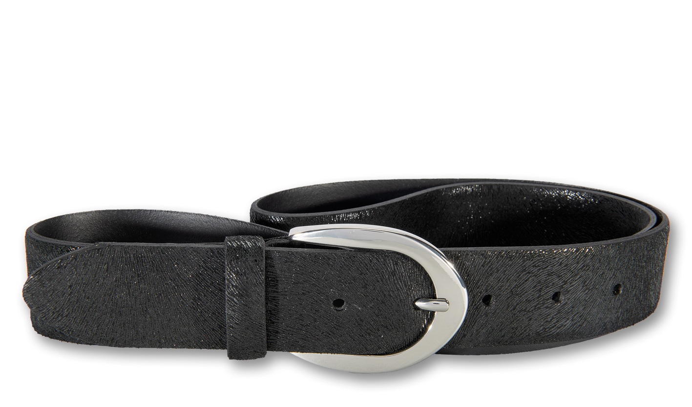 Emotion trifft Qualität. Mit dieser Kreation präsentiert silbergift feminine Fashion aus hochwertigem Rindleder mit anschmiegsamer Veloursoberfläche im stylischen Cavallolook. Die runden Kanten unterstreichen das angenehme Tragegefühl diese 3,5 cm breiten Gürtels ebenso wie die Hinterfütterung mit weichem Leder. Die Dornschliesse in flacher Hufeisenform ist die perfekte optische und funktionale Ergänzung. Typisch High-Class-Fashion von silbergift in sorgfältiger Fertigung made in Germany. Ob Party, Event, Büro oder Casual - dieser Gürtel ist Ihr modischer Champion in allen Disziplinen.