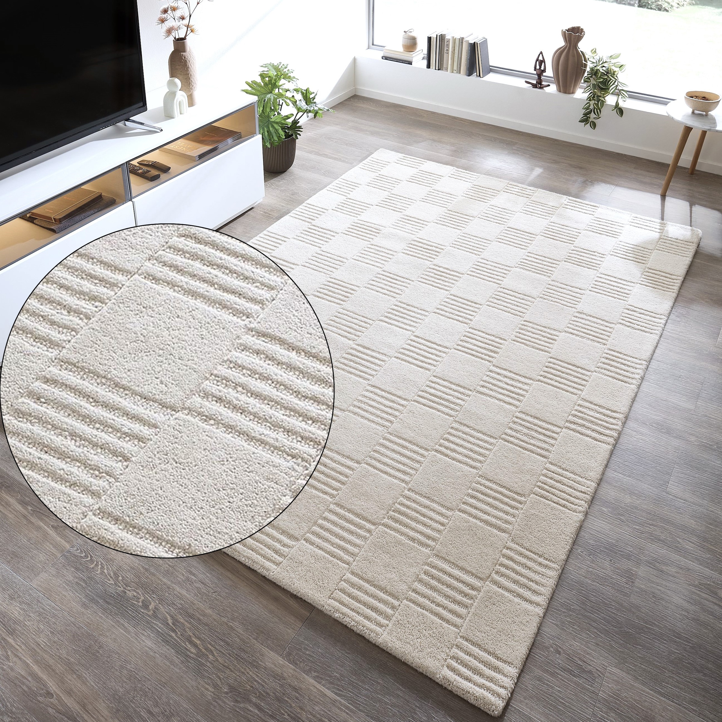 my home Wollteppich »Motala, Handgefertigt, Wolle, Hoch-Tief-Effekt,« rechteckig 14 mm Höhe einfarbig, 3D-Design, Wohnzimmer, Schlafzimmer, Esszimmer