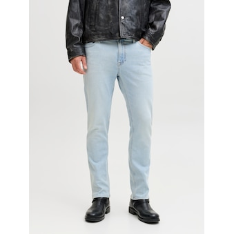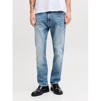 Unkomplizierte Herren-Regular-fit-Jeans von Jack & Jones. Mit gerade geschnittener Beinform und klassischer Leibhöhe. Versehen mit einem Markenlabel. Bietet viele Kombinationsmöglichkeiten von leger bis peppig. Der unempfindliche und robuste Jeansstoff macht die Hose pflegeleicht.