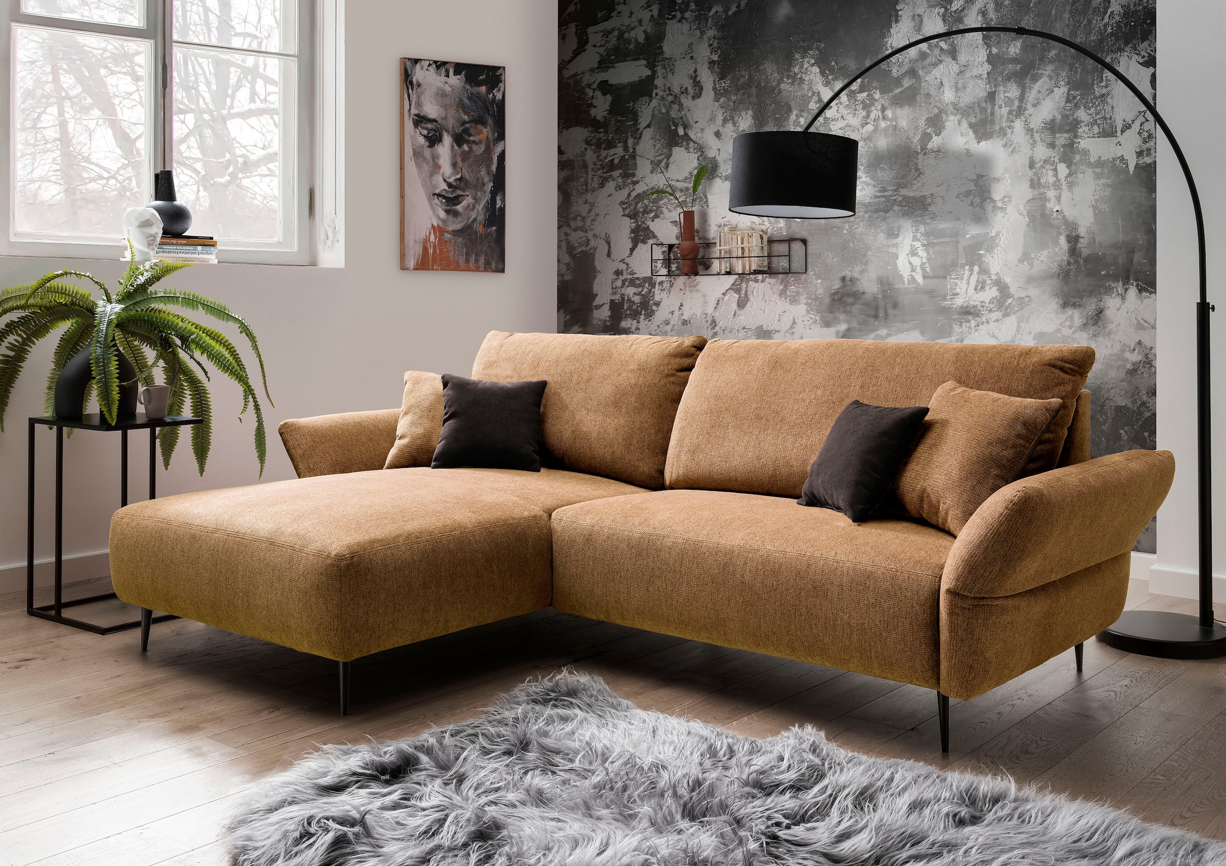 Home affaire Ecksofa »Tournon, L-Form, Breite 262 cm, Webstoff, Chenille« Designsofa im nordischen Stil, Wellenunterfederung, Metallfüsse