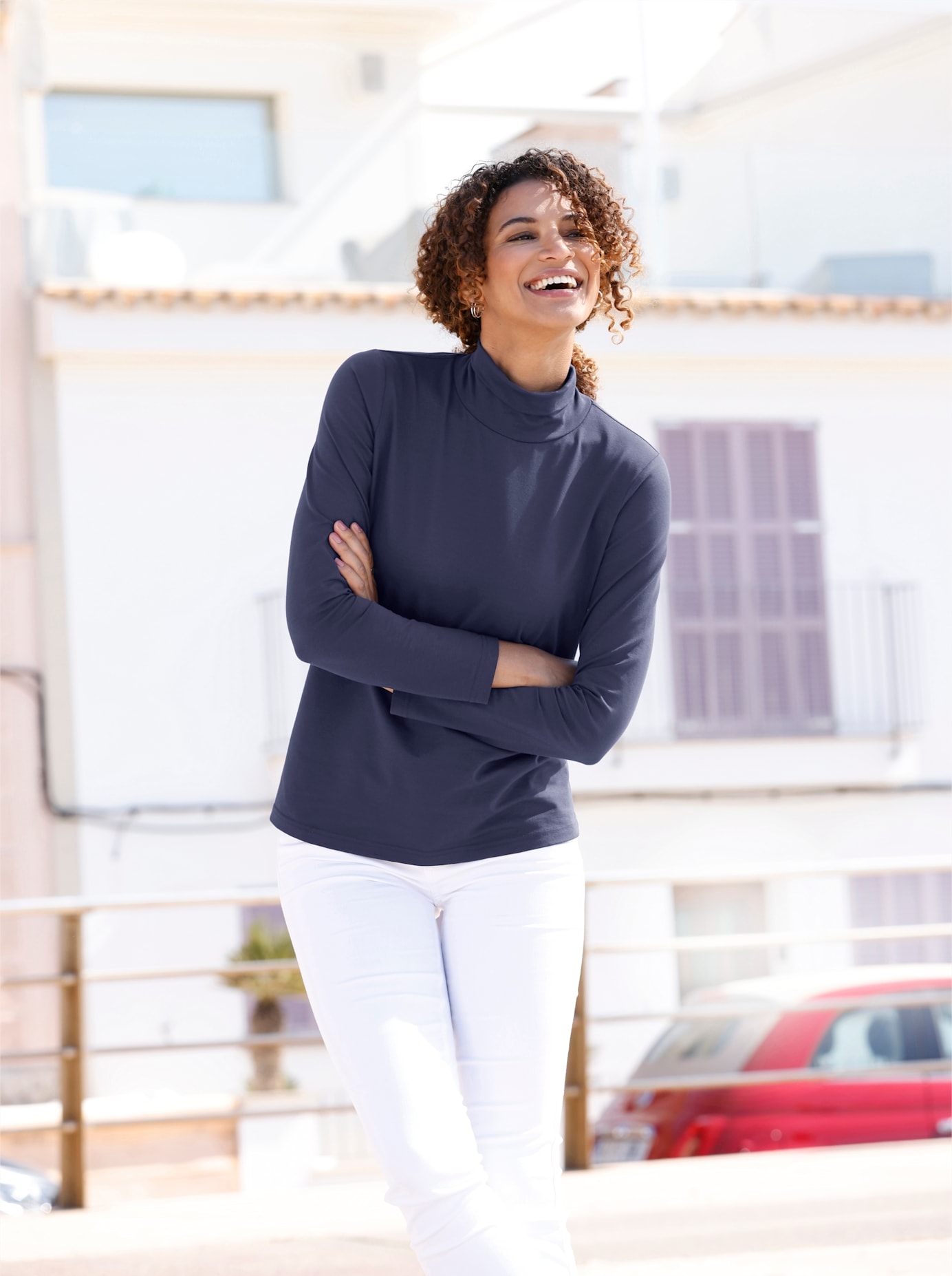 Angenehm weich und super trageangenehm: schmeichelndes Rollkragen-Shirt mit langen Ärmeln. GOTS-zertifiziert. 95% Baumwolle, 5% Elasthan. Maschinenwäsche.