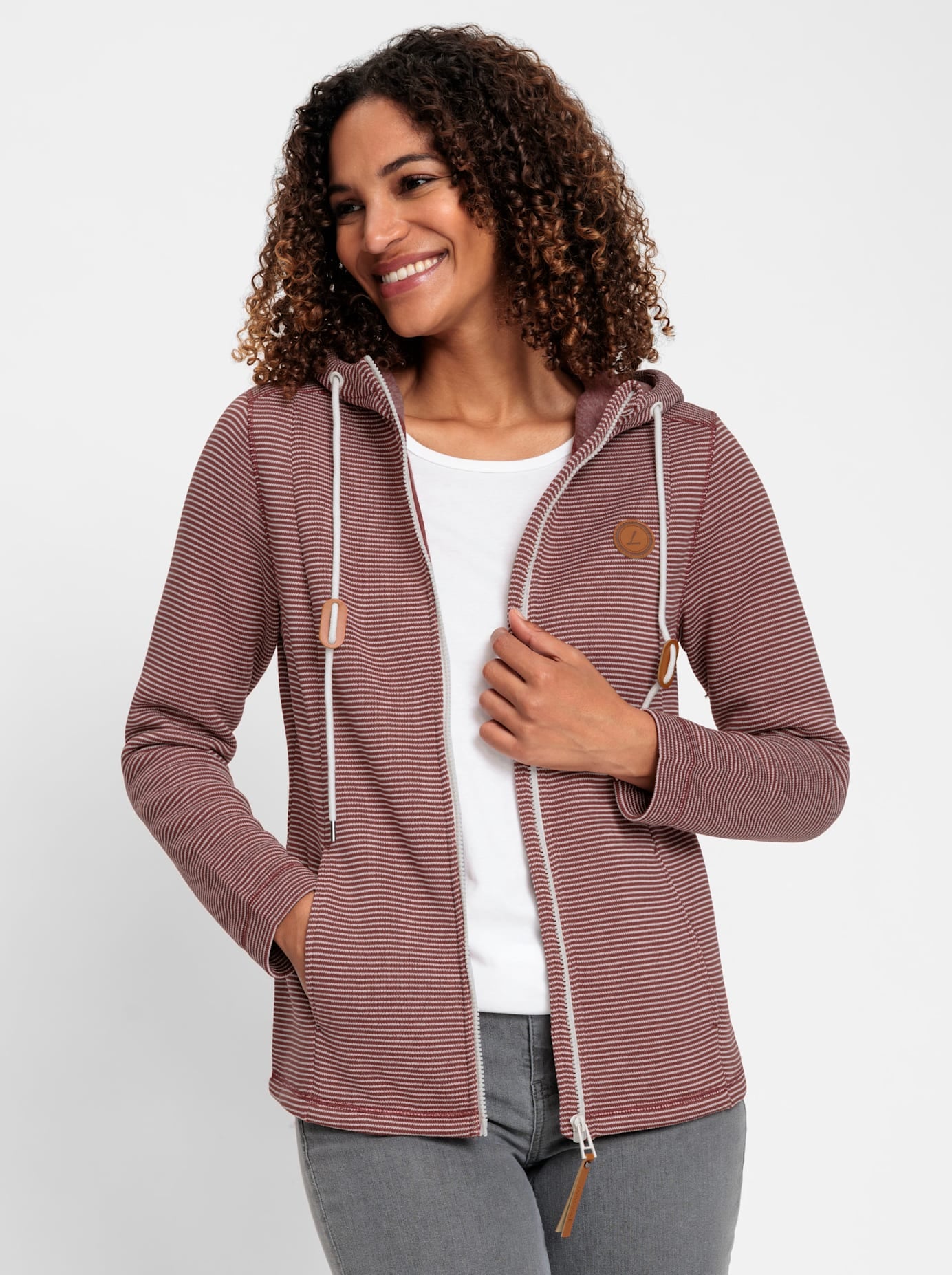 Kuschelig weich und innen wärmend angeraut: Fleece-Jacke im sportlichen Ringel-Dessin. Mit Kapuze samt Tunnelzug, durchgehendem Reissverschluss mit Kinnschutz und langen Ärmeln. Praktisch: die beiden Nahttaschen. 100% Polyester. Maschinenwäsche.