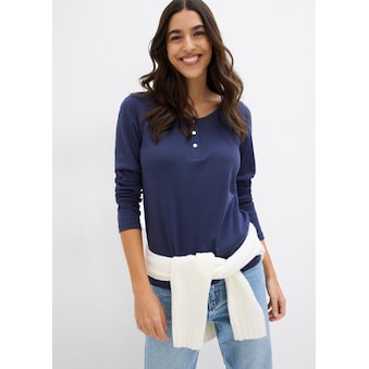 bonprix Langarmshirt leicht taillierte Passform, Rundhalsausschnitt, aus reiner Baumwolle