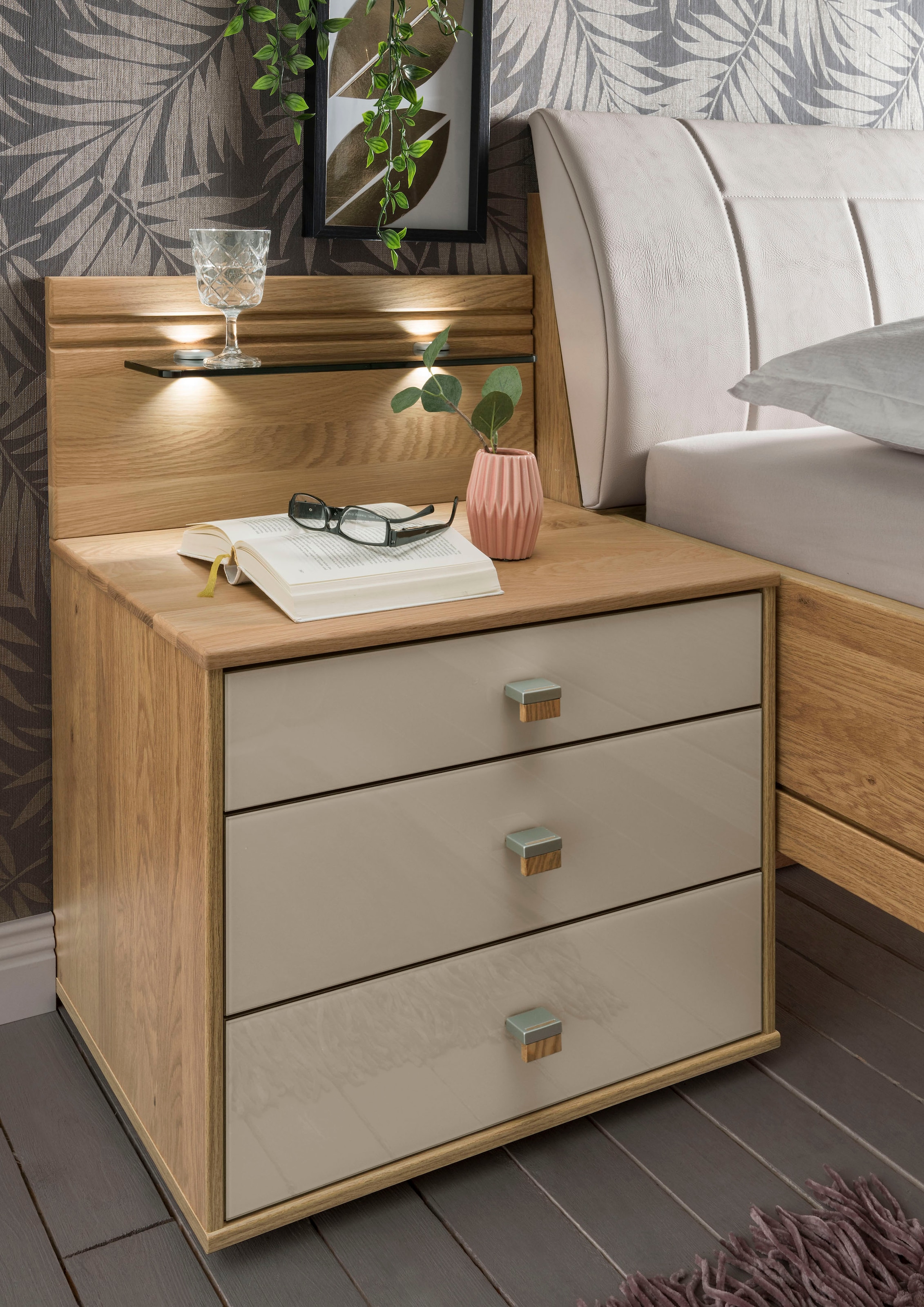 - Die 3 Schubkästen des Nachtschranks bieten ausreichend Platz für Bücher, Brille oder persönliche Dinge und sorgen für Ordnung direkt am Bett.