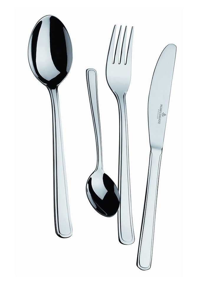 Besteckset, Picard & Wielpütz, »SUSANNE«. Gefertigt aus hochwertigem Chromnickelstahl 18/10, ganz poliert. Das Besteck ist spülmaschinengeeignet und in folgenden Zusammenstellungen erhältlich: 24-teilig: je 6 Menülöffel, Menügabeln, Menümesser und Kaffeelöffel. 30-teilig: je 6 Menülöffel, Menügabeln, Menümesser, Kaffeelöffel und Kaffeegabeln.