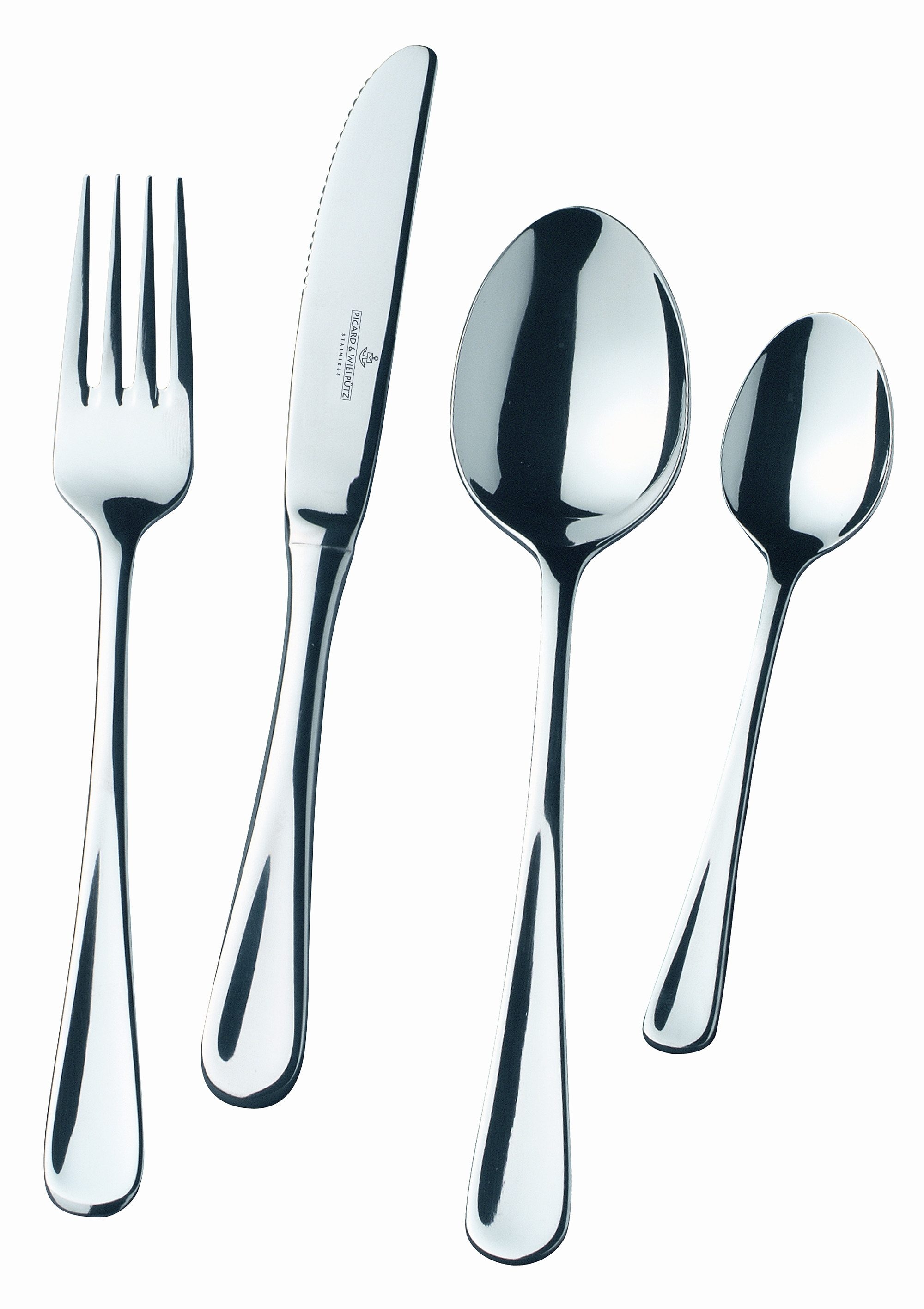 Besteckserie, »Casino«, Picard & Wielpütz. Besteckserie »Casino« von Picard & Wielpütz aus 18/0 Chrom Edelstahl. Ein vielfach bewährtes Besteck. Die Besteckserie ist hochglanzpoliert. Sie ist langlebig und spülmaschinengeeignet. Die Bestecke der Serie »Casino« eignen sich wirklich für jeden Anlass. Sie sind in verschiedenen Zusammenstellungen erhältlich: Menügarnitur 24-teilig: bestehend aus je 6 Menülöffel, Menügabeln, Menümessser und Kaffeelöffel. Menügarnitur 30-teilig: bestehend aus je 6 Menülöffel, Menügabeln, Menümessser, Kaffeelöffel und Kuchengabeln. Menügarnitur 60-teilig: bestehend aus je 12 Menülöffel, Menügabeln, Menümesser, Kaffeelöffel, Kuchengabeln.
