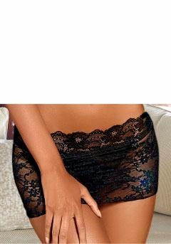 Elastische Spitze in sexy Formen! Ganz aus elastischer Spitze. Mit eingearbeitetem String aus softer Microtouch- Ware. Aus 87% Polyamid, 13% Elasthan.