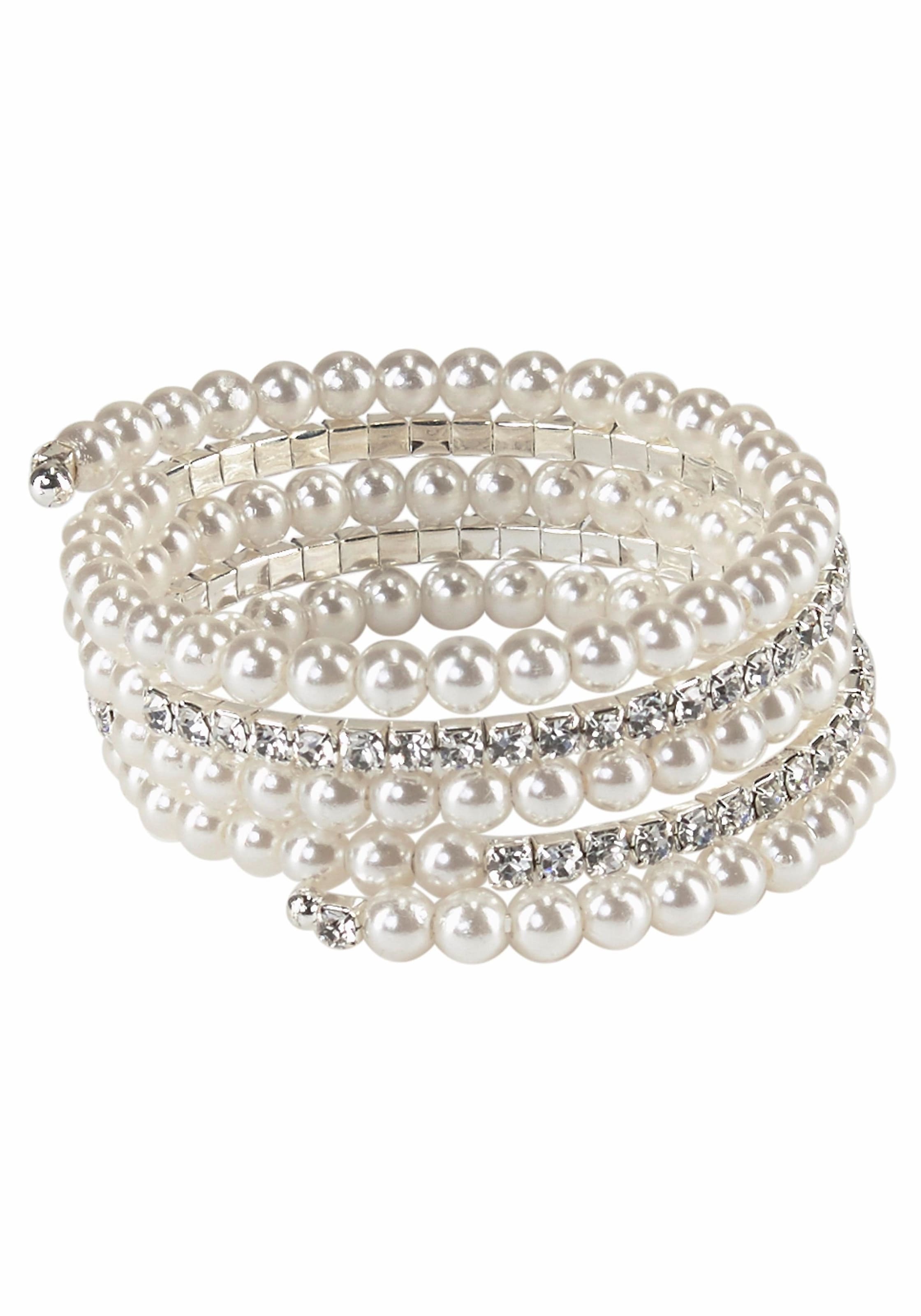 Die Armspirale verleiht jedem Outfit einen Hauch von Glanz und Glamour. Dicht aneinandergereihte polierte Zierperlen werden in dem flexiblen Spiralendesign von wunderbar funkelnden Strass-Steinen ergänzt und das Ergebnis ist dieses elegante Armband. Dabei schliesst das zeitlose Schmuckstück an beiden Enden mit silberfarbenem Dekor ab, was dem Ganzen zusätzliche Hochwertigkeit verleiht. Ein schickes Accessoire, perfekt geeignet für festliche Gelegenheiten!
