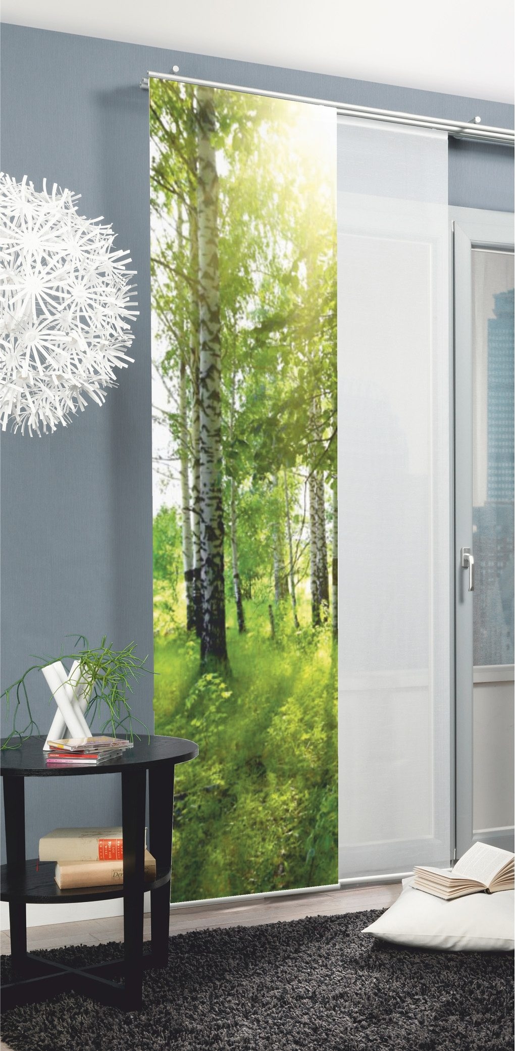 Hinweis Dekoration | Eine Schiebegardine ist eine schmale, glatt hängende Stoffbahn, die sich sowohl als Sichtschutz als auch zur Raumteilung eignet. Durch die Schiebetechnik sind Schiebegardinen sehr flexibel einsetzbar. |