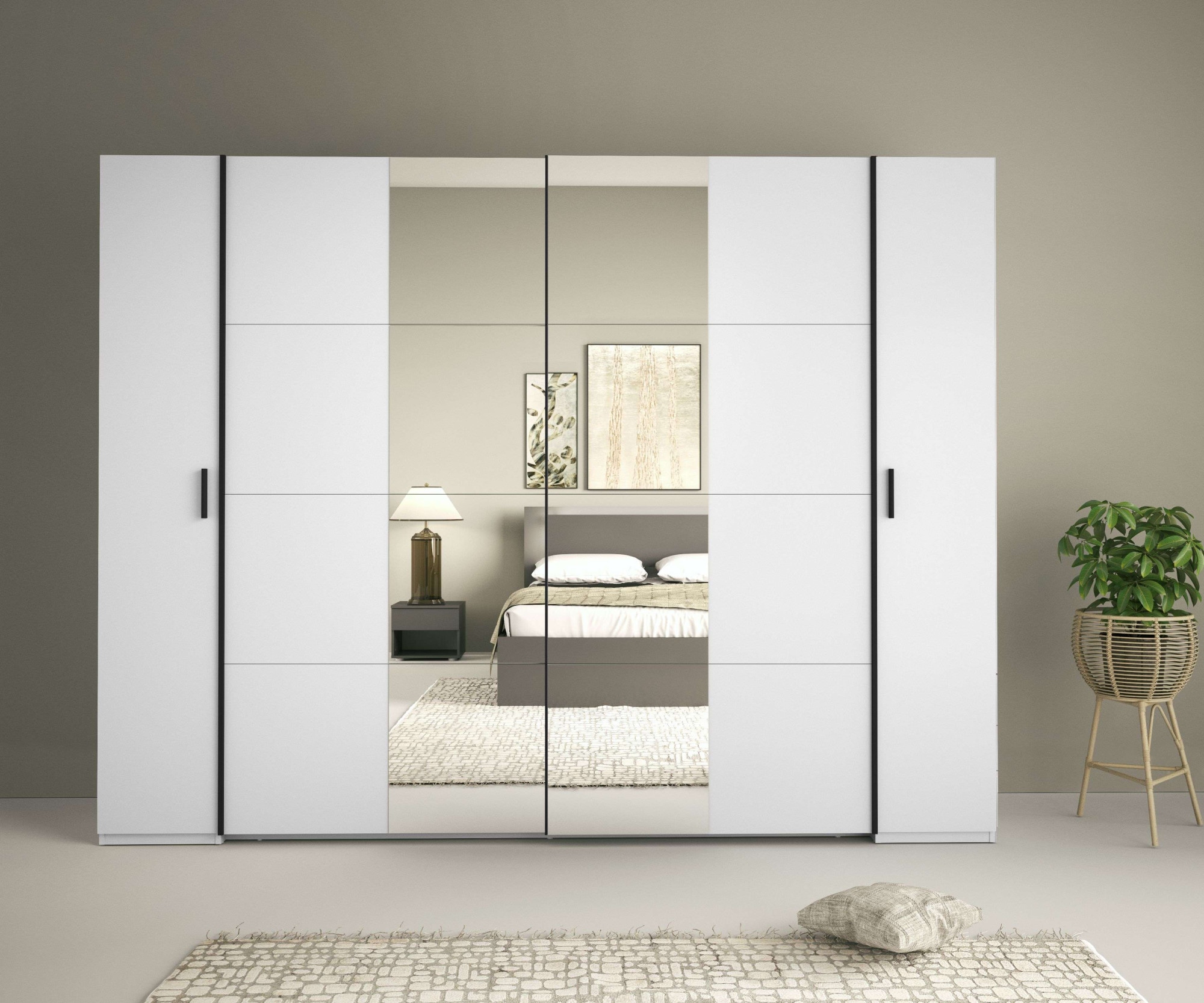 - Moderner Kleiderschrank mit Spiegel in modernen Farben mit eleganten Metallgriffleisten wahlweise in Alufarben oder Graumetallic