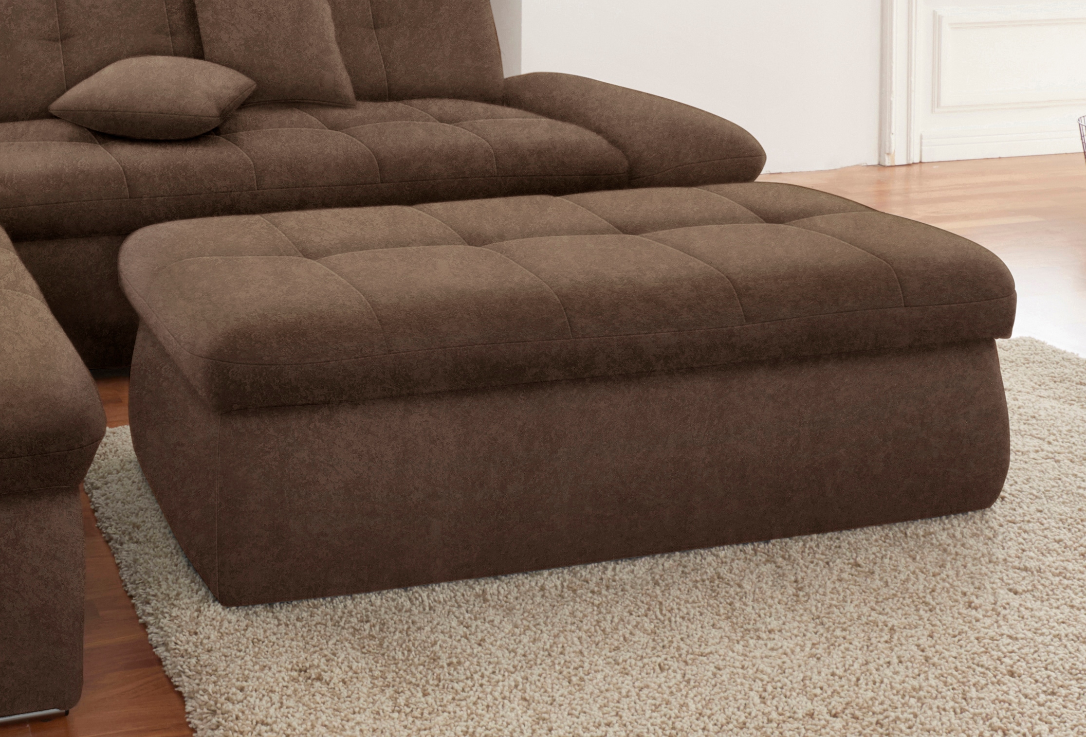 • Inklusive loser Zierkissen. FLEXIBLE GESTALTUNG - Ottomane links oder rechts bestellbar für optimale Anpassung an den Wohnraum
