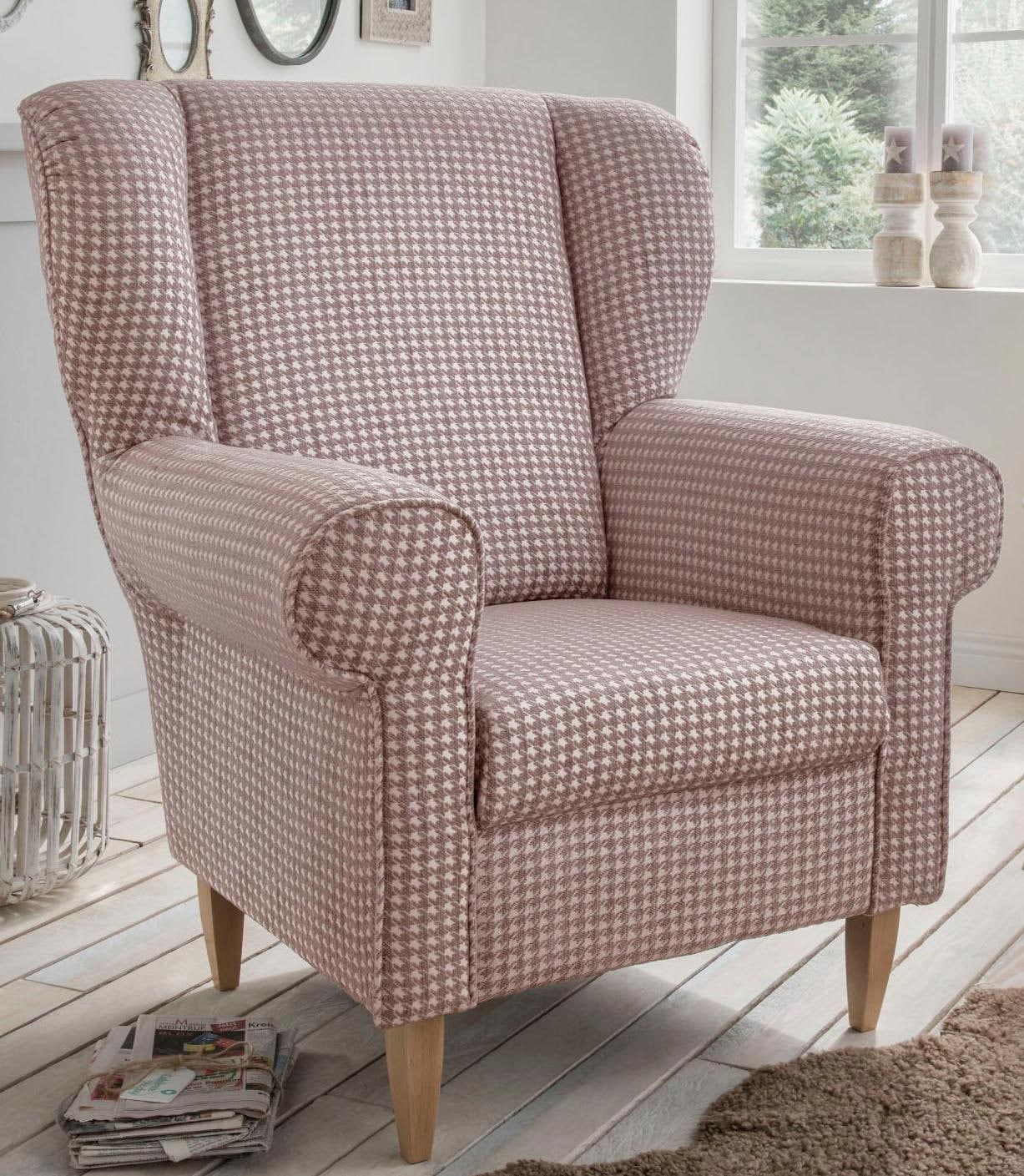 Home affaire Sessel »Asino« mit Hahnentritt Bezug, wahlweise mit Hocker