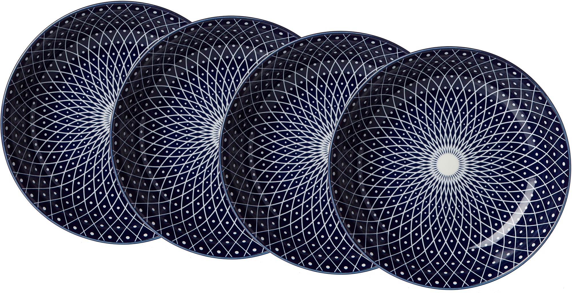 Ritzenhoff & Breker Suppenteller, Ø 20,5 cm, Keramik, 4 Teile, »ROYAL REIKO«. Die Geschirrserie »Royal« erobert als zeitgemäss stylische Adaption traditioneller japanischer Reisschalen-Dekore nicht nur die Herzen trendbewusster Kosmopoliten. Das Dessin »Sakura«, bei dem sich florale Ornamente aus zierlichen Blüten und Blättern liebevoll über die Geschirrteile ranken, erinnert an die japanische Kirschblüte. Damit hat zwar jede der drei royalblauen Dessinvarianten »Sakura«, »Makoto« und »Reiko« der Serie »Royal« seinen ganz individuellen Charakter, im gemeinsamen Mix & Match bieten sie aber dennoch einen ausgesprochen harmonischen Anblick im typischen »Land des Lächelns«-Look. Ein besonderer Reiz liegt darin, dass die Dekore bei allen Geschirrteilen vollflächig aufgebracht sind, damit die schönen Dessins richtig zur Geltung können. Set bestehend aus: 4 Suppenteller, ca. 20,5 cm Durchmesser und 4,5 cm hoch. Material: Keramik. Spülmaschinen- und mikrowellengeeignet.