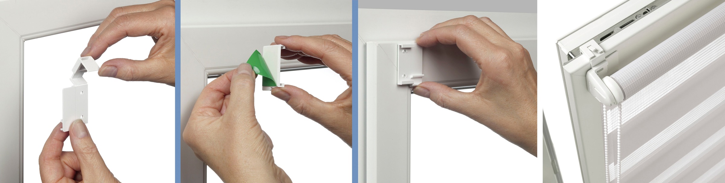Hinweis Montageart | Klemmfix-Montage: ganz einfach und praktisch! Mit den beiliegenden Klebe-/Klemmträgern wird der Artikel ohne Bohren und Schrauben direkt auf dem Fenster-/Türflügel montiert. |