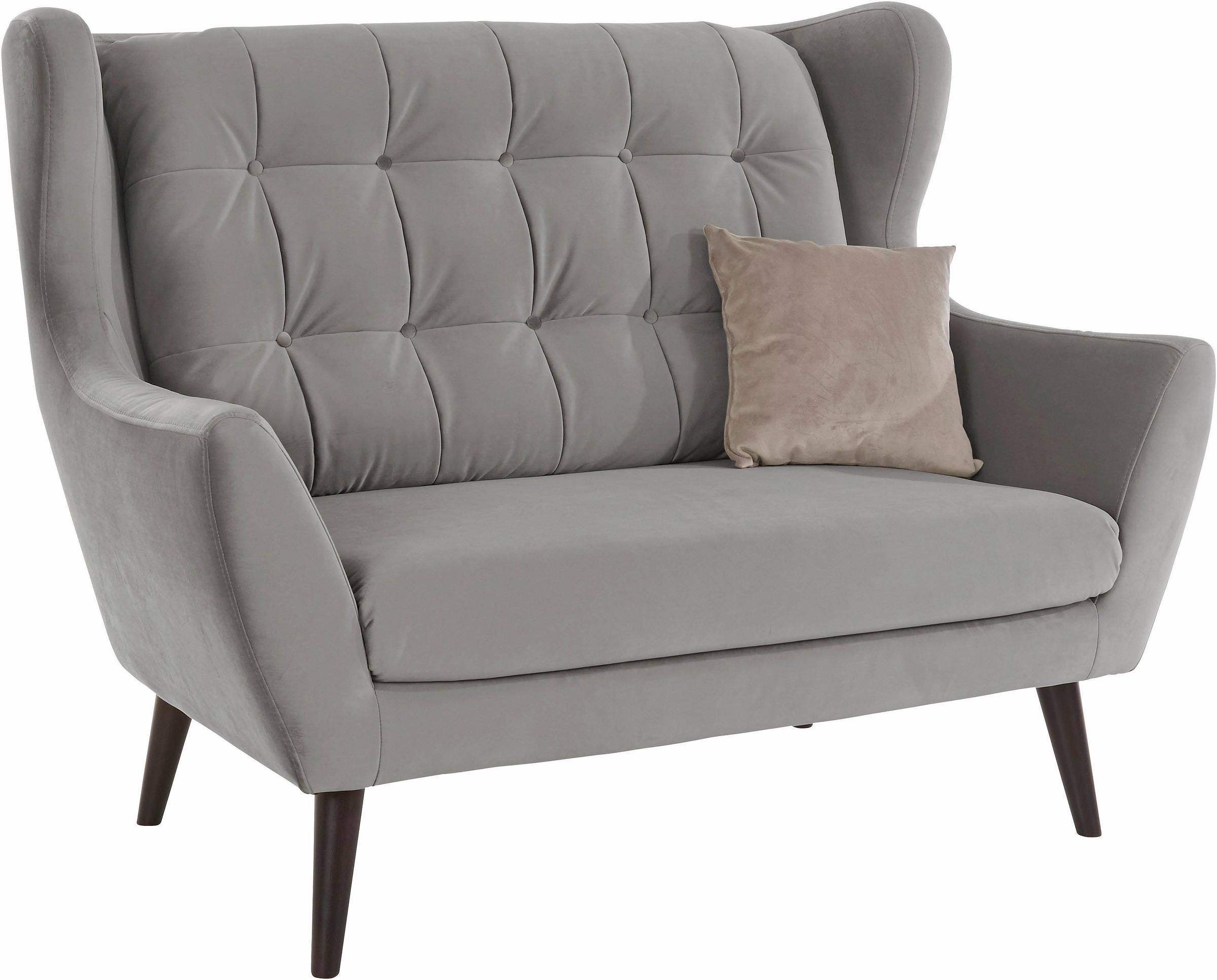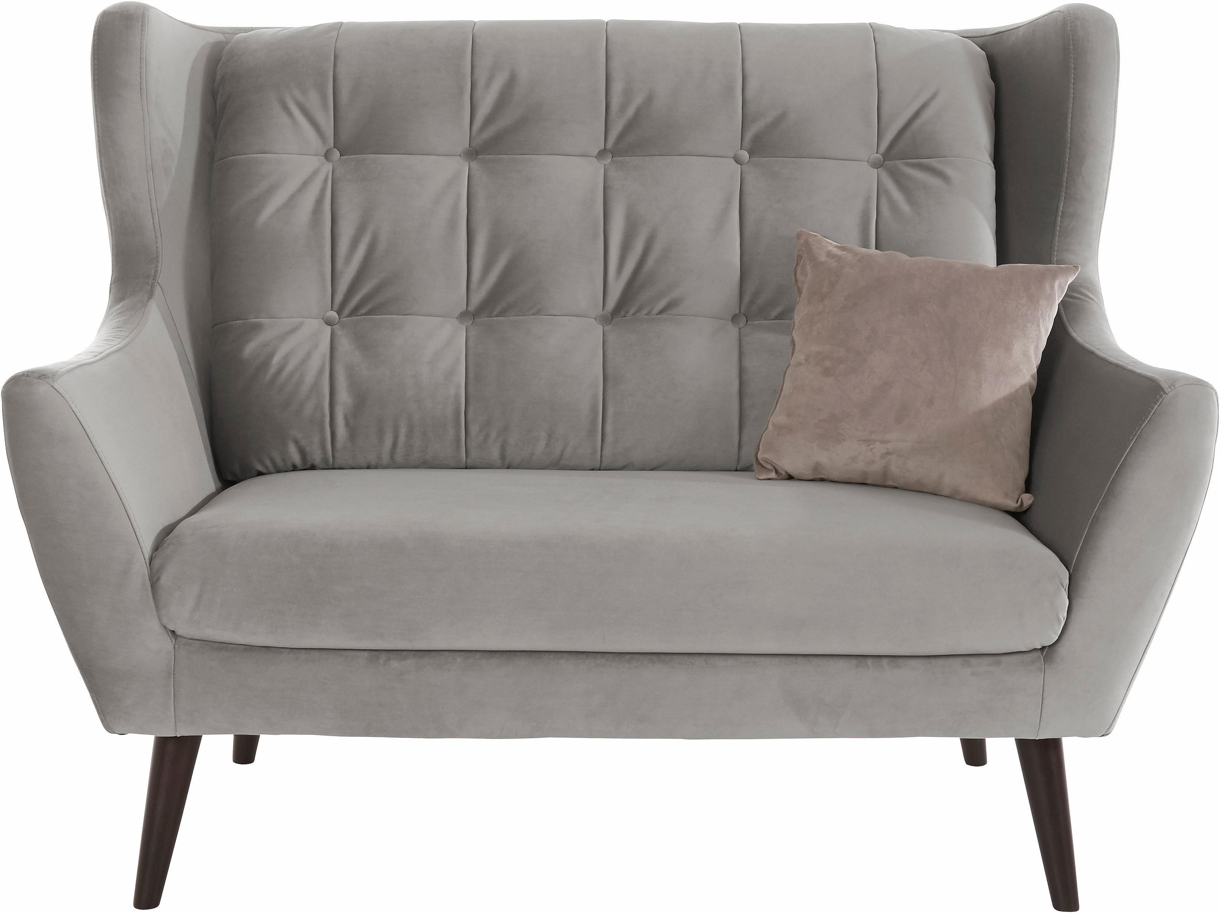 2-Sitzer Sofa »Hemmink« mit Knopfheftung und hohen konischen Füssen aus Holz. Auch als 3-Sitzer oder Sessel erhältlich.