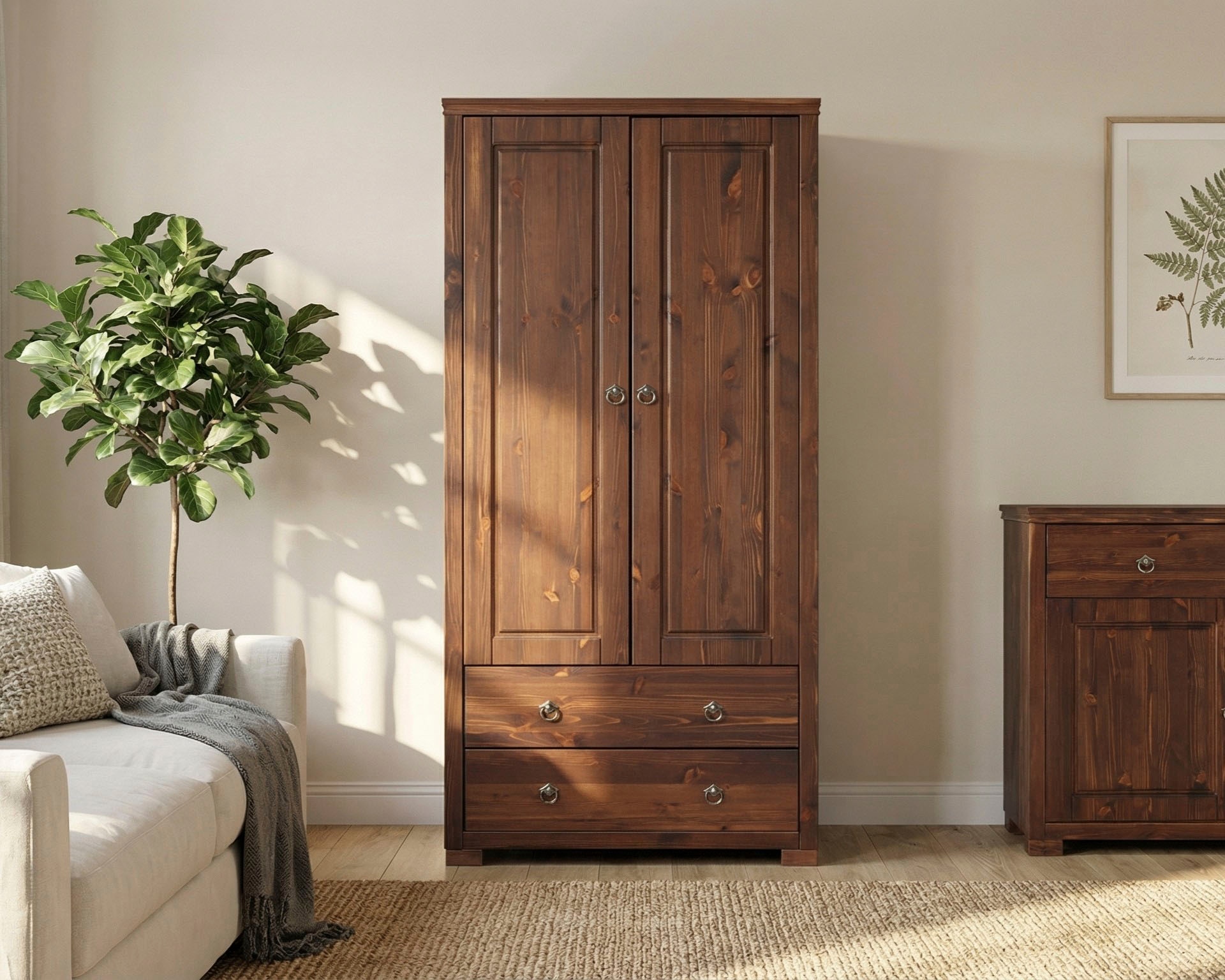Materialhinweis | Die Sichtbarkeit der Holzstruktur und Äste sind Teil der individuellen Ausstrahlung jedes einzelnen Möbelstückes. Da es sich um ein Naturprodukt handelt, kann sich die Oberfläche verändern. |