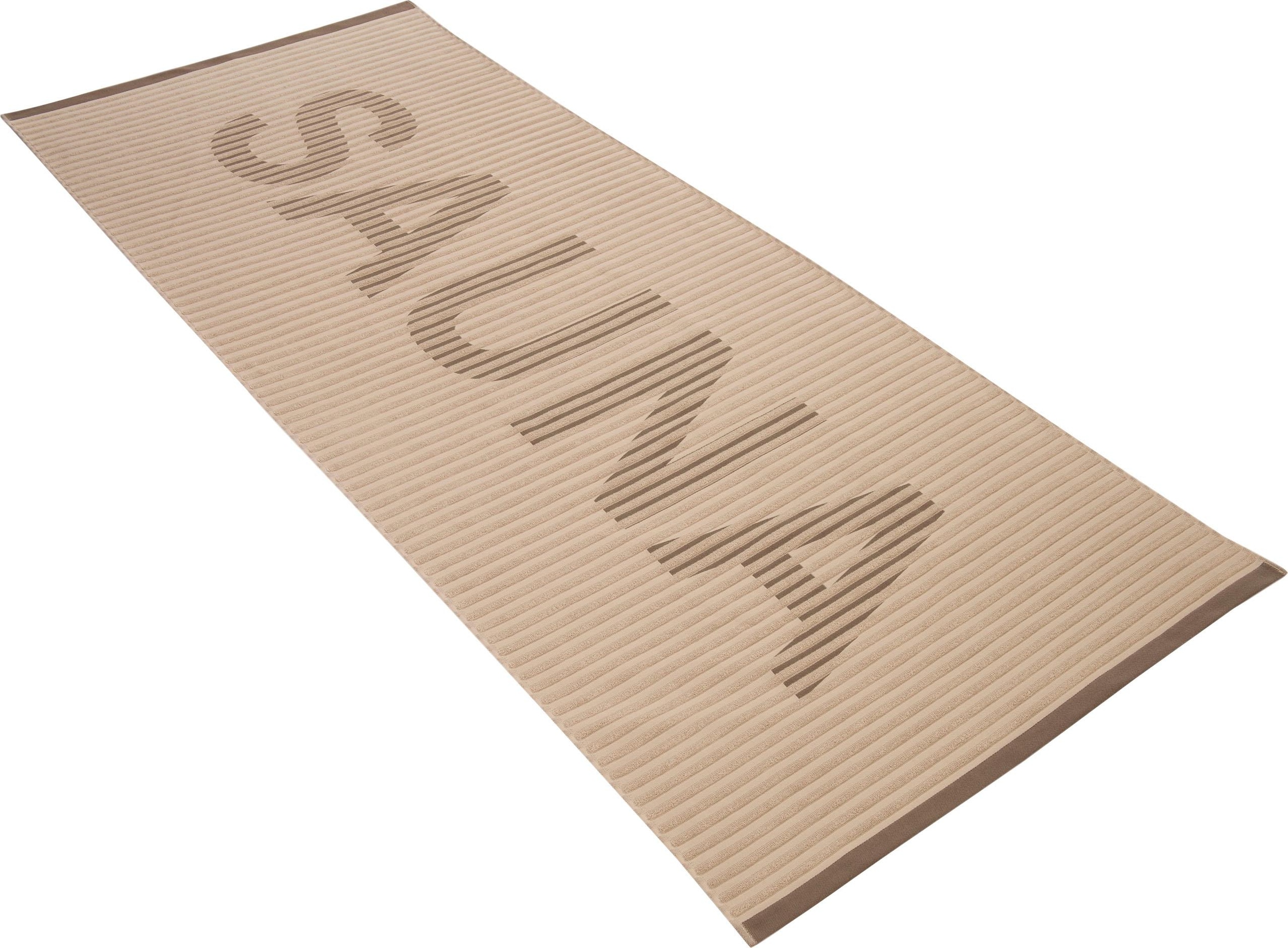 überzeugt nicht nur durch ein absolut trendiges Design, sondern auch durch einen wunderbar zarten Griff. Der grosse ""Sauna""-Schriftzug ist ein garantierter Blickfang und durch die besonders hohe Saugfähigkeit ist dieses Tuch der optimale Begleiter bei Ihrem nächsten Spa-Aufenthalt. Durch seine Grösse ist dieses Tuch sowohl als Liegetuch als auch als Wickeltuch bestens geeignet.