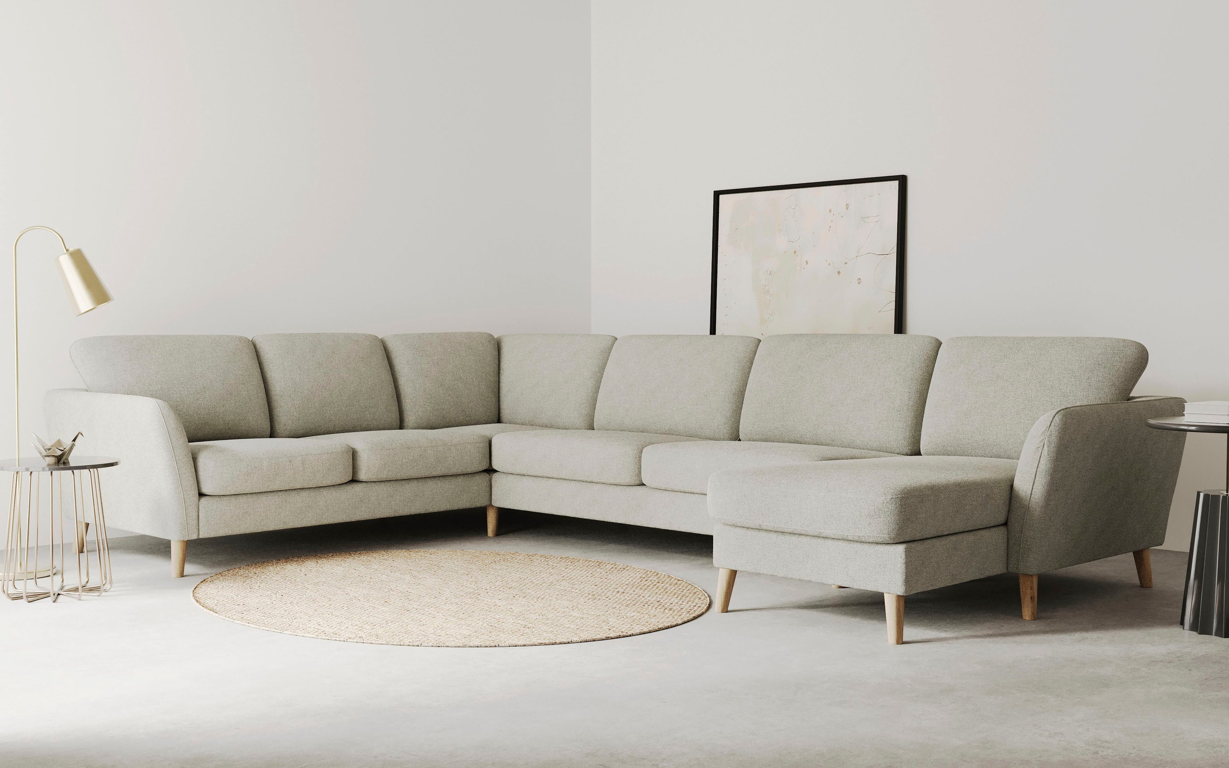 - Frei im Raum stellbar: Rücken echt bezogen, ermöglicht flexible Raumgestaltung