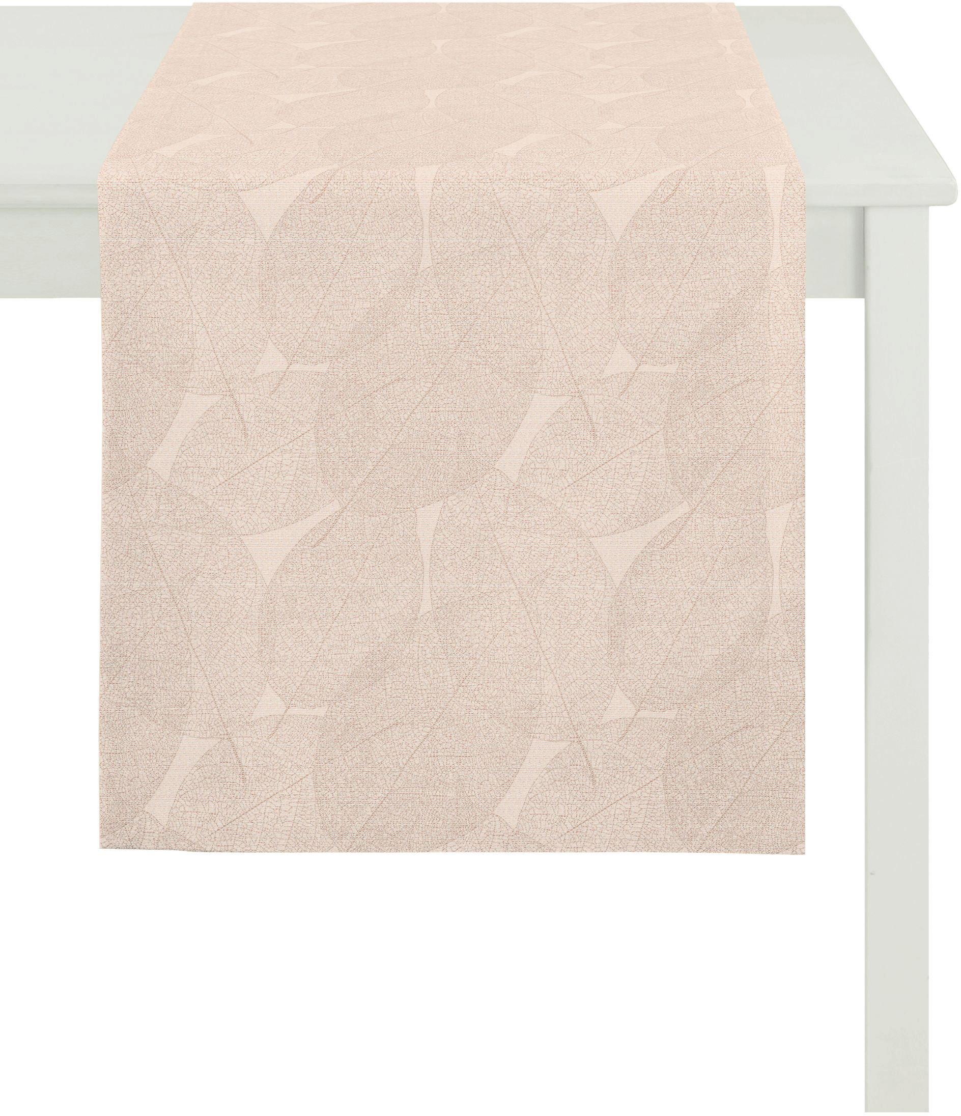 Apelt Tischläufer »3002 Christmas Elegance«. Ein textiler Klassiker für kultiviertes Wohnen von Apelt. Kunstvoll gewebtes Blattmotiv, veredelt mit Lurexfäden, als allover Muster gestaltet und in Jacquardtechnik gewebt. Erstklassige Verarbeitung. Das pflegeleichte, hochwertige Material besteht aus 100% Polyester. Geprüft nach STANDARD 100 by OEKO-TEX® und made in Germany.