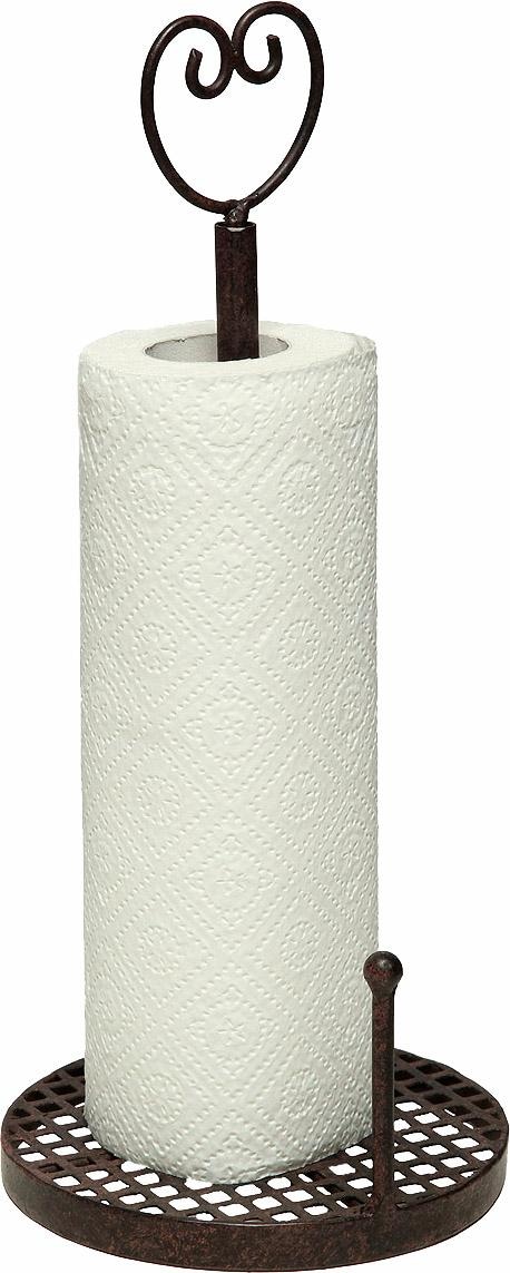 Tolles Accessoire im antiken Look: Der Küchenrollenhalter mit Herz von Home affaire beeindruckt mit seinem hübschen Design. Er besteht aus stabilem Eisen, das durch sein Gewicht für einen soliden Stand des Papierrollenhalters sorgt. Die untere Bodenplatte ist durchbrochen und etwas erhöht. Ein seitlicher Stab auf der Platte verhindert, dass sich das Küchenpapier von alleine abrollt. Als Halterung und Rollenstopper befindet sich ein geschmiedetes Herz an der Aufnahmestange. Es verleiht diesem Küchenutensil eine aparte Note.