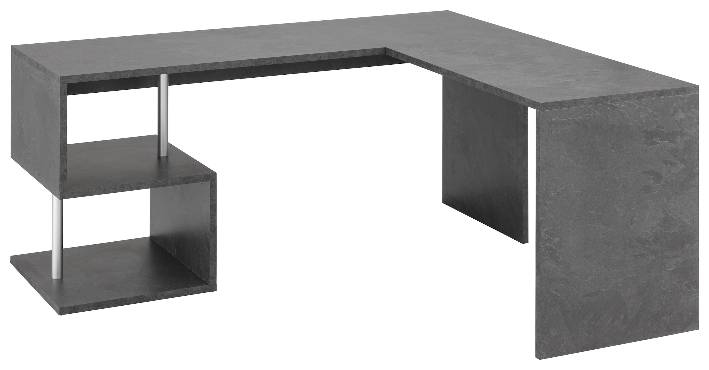 Eckschreibtisch »ESSE» (B/T/H 180x160/60/77,5cm). Aus Holzwerstoff, melaminbeschichtet. Mit 2 offenen Fächern ( Innenmasse B/T/Hje ca. 23/60/35 cm).