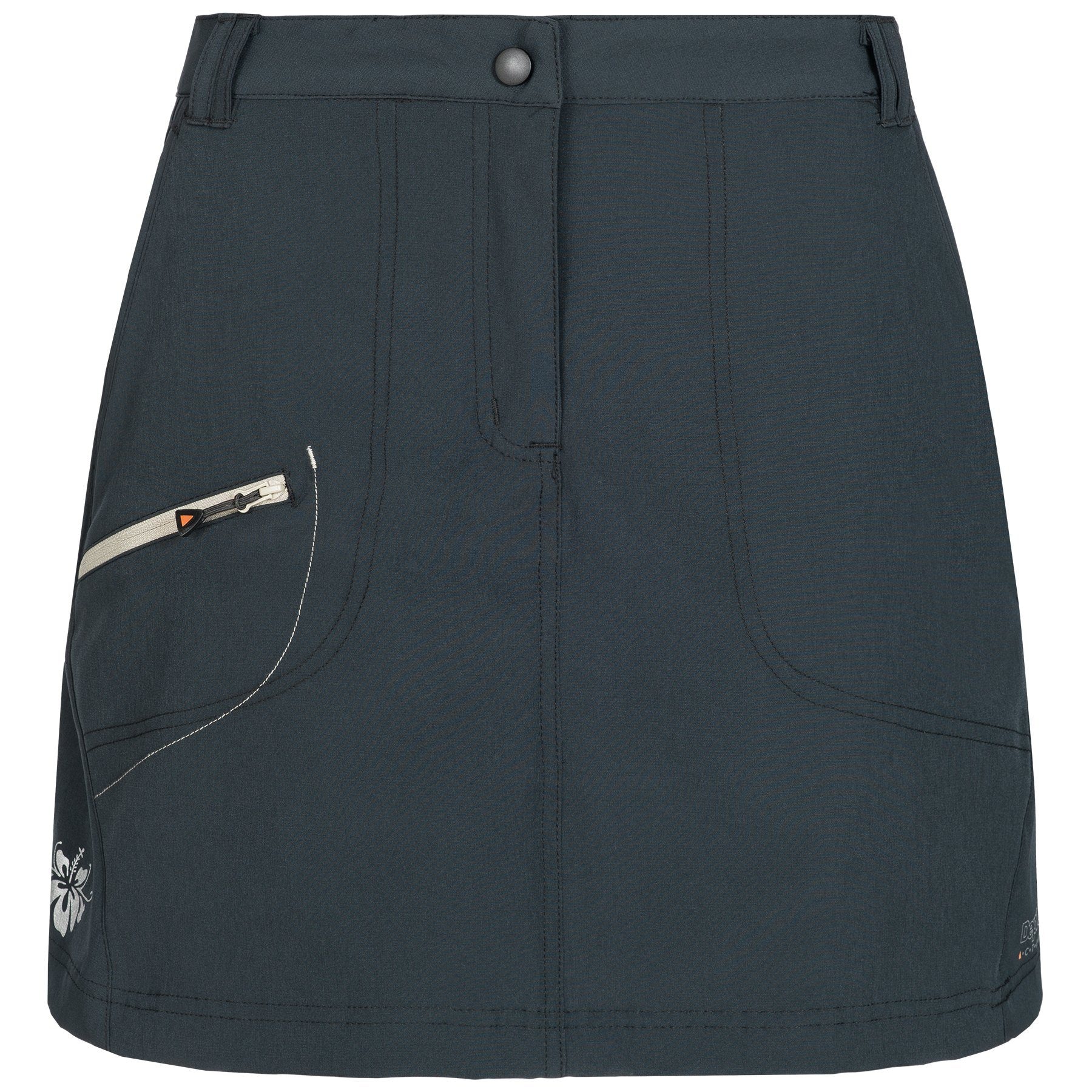 Der modische Granby Skort von DEPROC ACTIVE, bestehend aus Rock und Short, ist mit seinem atmungsaktiven, schnell trocknenden, leichten Gewebe aus 95% Polyester und 5% Elastan absolut outdoortauglich und lässt sich besonders angenehm tragen. Der hintere Sattel in Verbindung mit dem Vorderteil, das als Rock verarbeitet ist, sorgt für eine gute Passform und grösstmögliche Bewegungsfreiheit auch für grosse Konfektionsgrössen. Mit dieser modischen Short machen Sie auch auf der Sonnenterrasse im Café nach ausgiebigem Wandern eine gute Figur. Das Gewicht des attraktiven Outdoorkleidungsstücks beträgt nur 300 g. Somit lässt sich der Skort gut im Rucksack unterbringen. Dank der integrierten Gürtelschlaufen lässt sich die Weite mithilfe eines Gürtels einstellen. In den Pocket Taschen vorn und hinten, die jeweils mit einem farbigen Kontrastreissverschluss ausgestattet sind, lassen sich Kreditkarte oder andere Utensilien verstauen. Der Skort ist in den Grössen 34 bis 56 bestellbar.