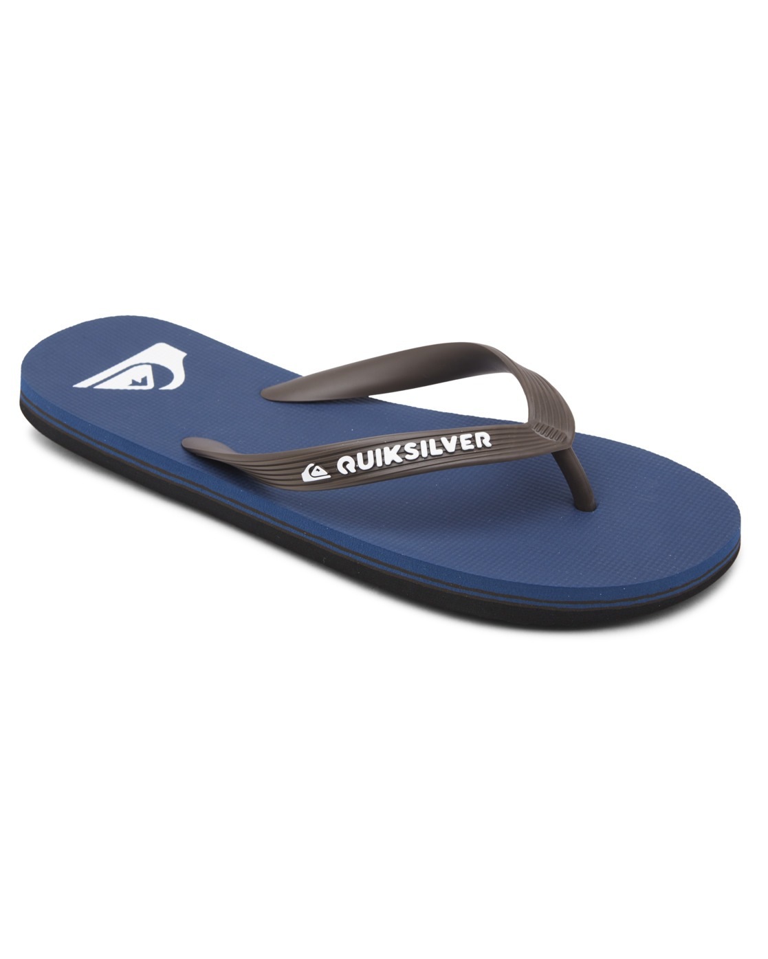 Sandalen für Männer. Die Eigenschaften dieses Produkts sind: Flexibles, synthetisches, an 3 Punkten befestigtes Gummiband, Quiksilver-Logo und feines Mountain-and-Wave-Logo, Rutschfeste, strukturierte Innensohle, Poppige schmale Linien auf der Seite und Geschäumte Gummilaufsohle mit mehrwinkligen Logo-Stollen für Traktion.